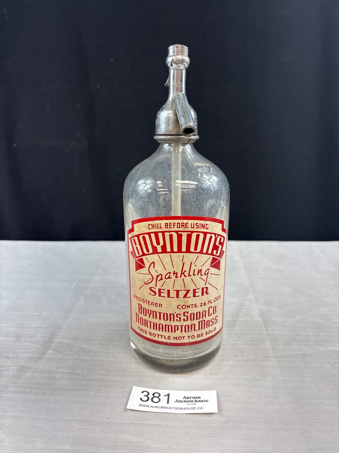 Antique Boynton's Sparkling Setlzer Bottle Nice Graphics!