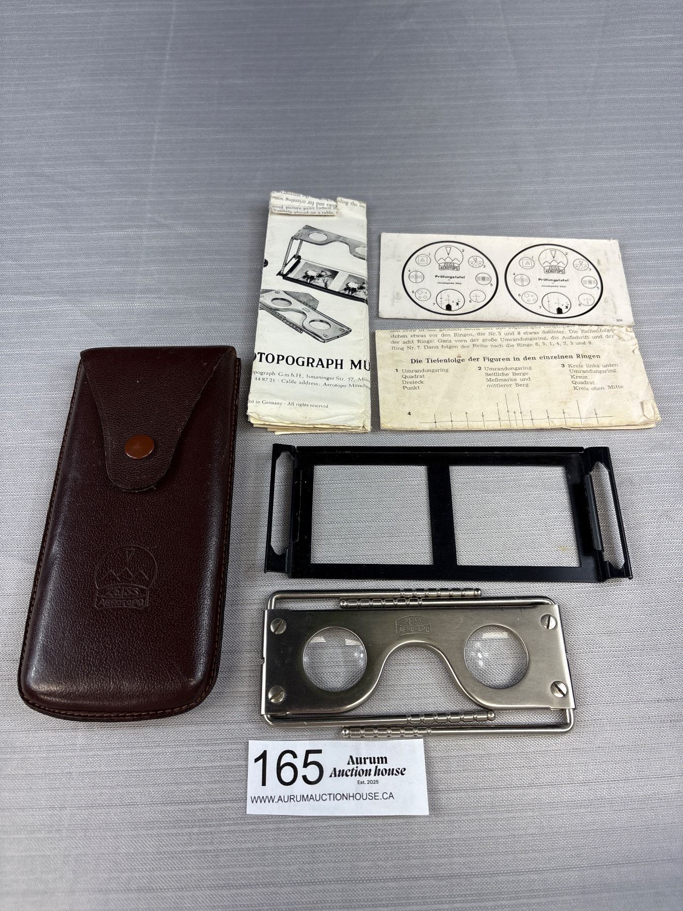 Antique Carl Zeiss Aerotopograph Stereoscopic Viewer With Picture Holder, Leather Case & Original Instructions