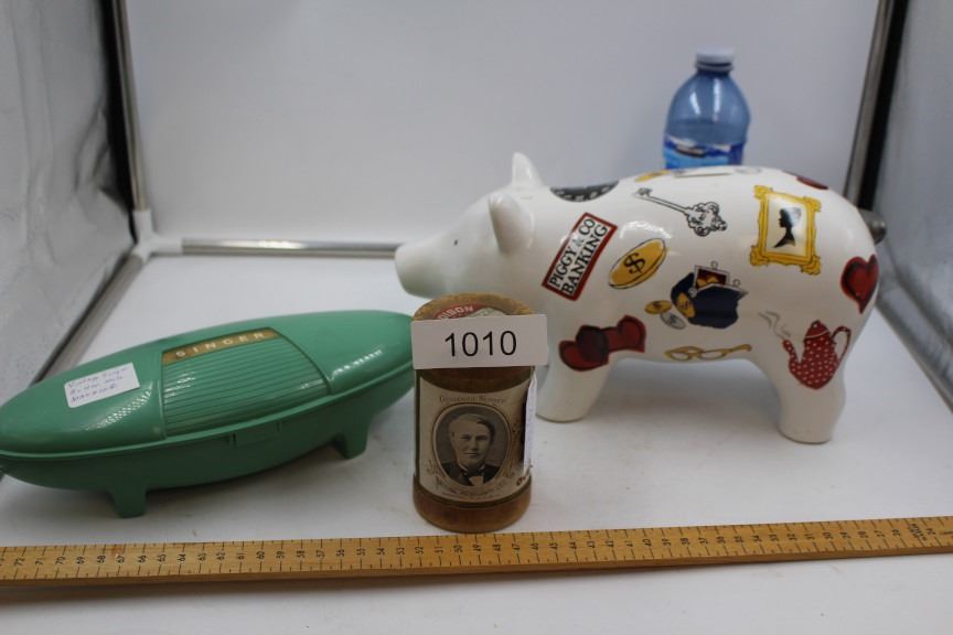 Vintage Singer Button Hole Machine, Ceramic Piggy Bank