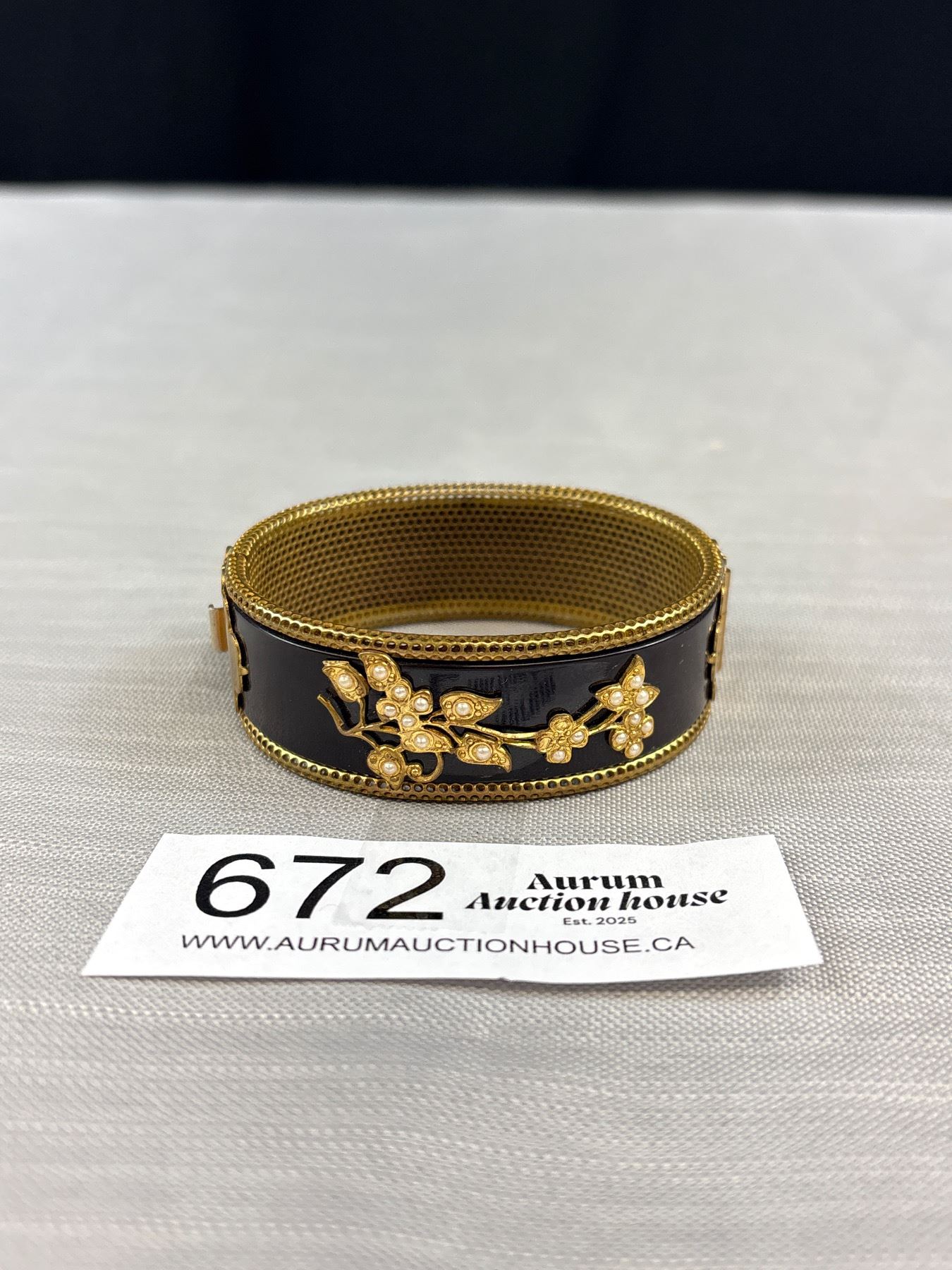 Antique Enameled w/ Seed Pearls Hinged Bangle