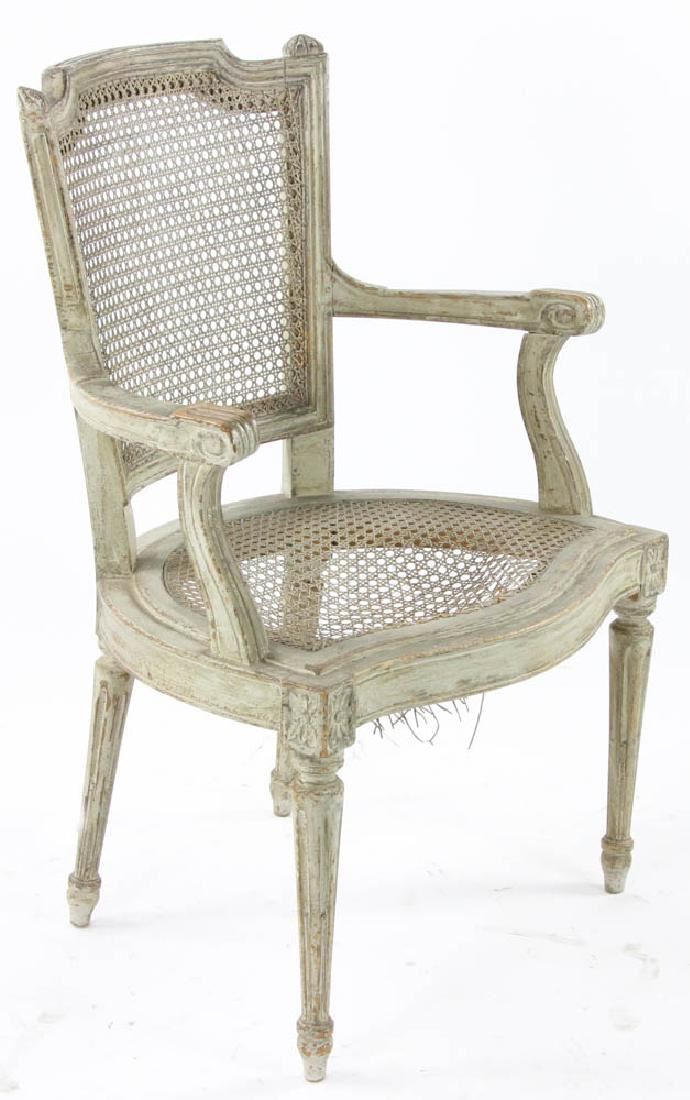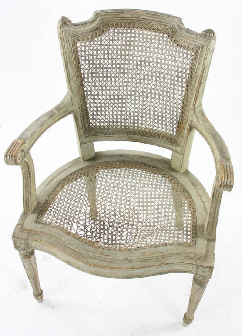 Antique French armchair with cane back 34 1/2" H x 23" W x 19" D. Provenance: Vero Beach, Florida estate.