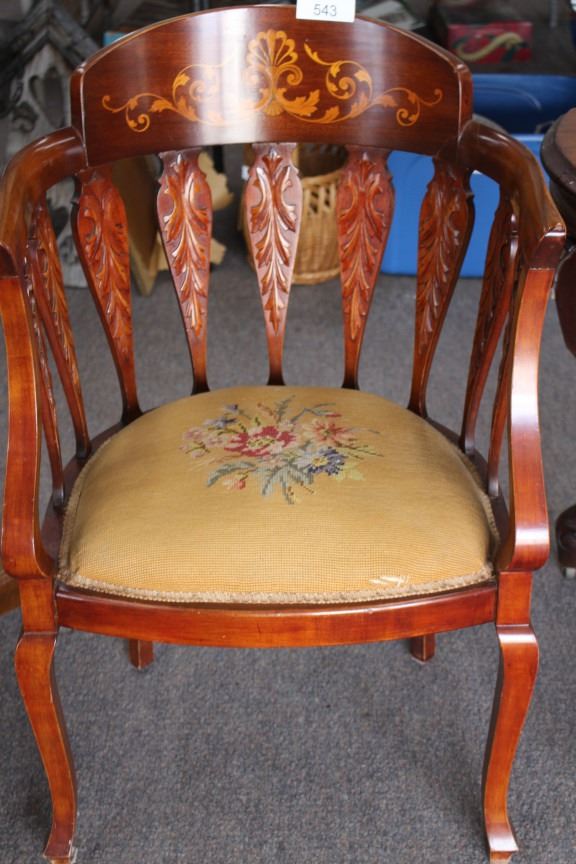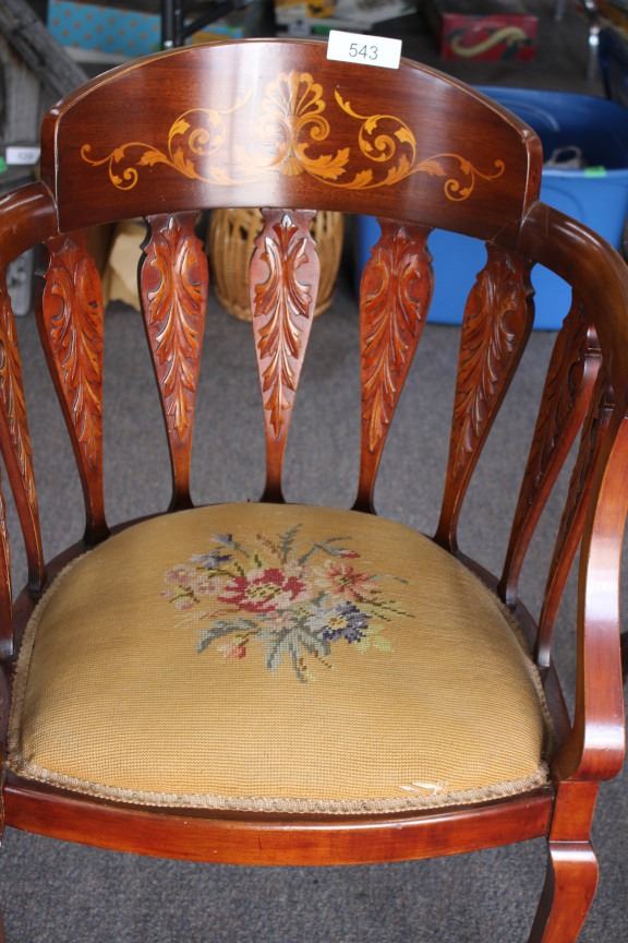 Antique, Ornate, Upholstered , Wood Accent Chair