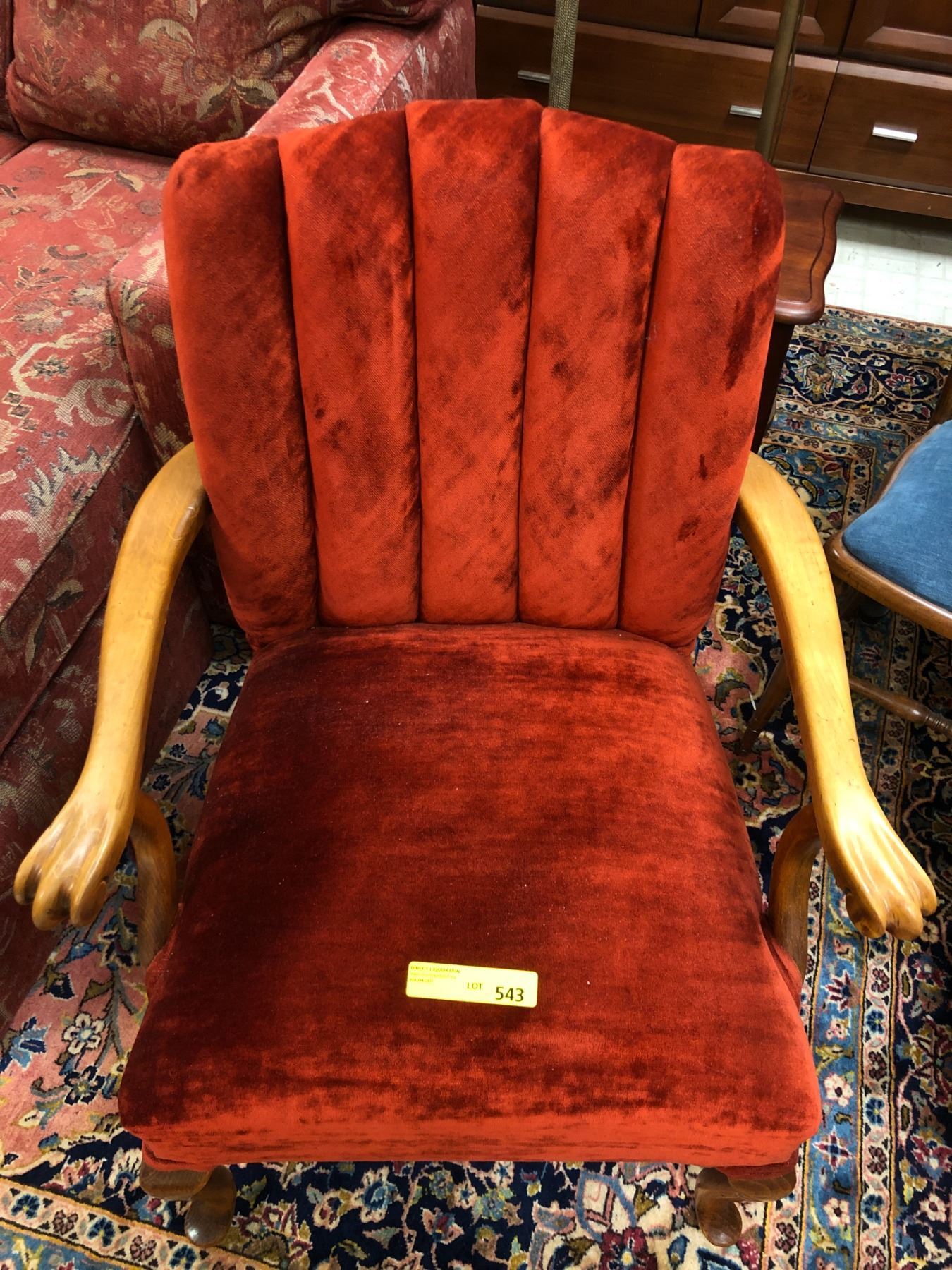 Antique Red Velour Armchair - approx. 25in x 28in x 35in