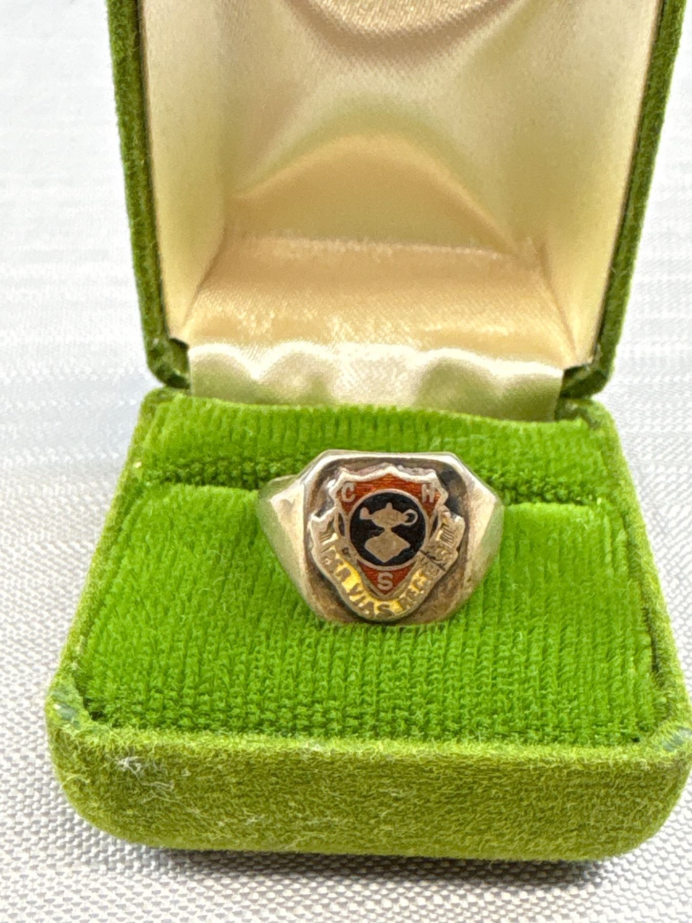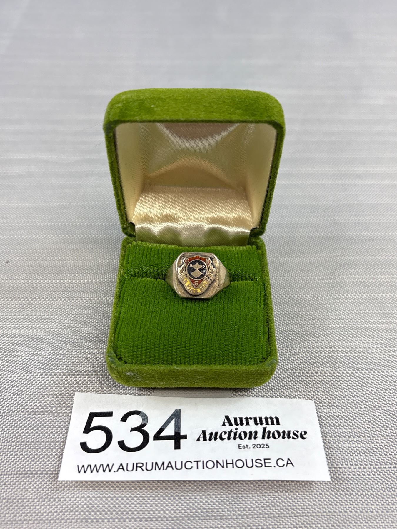 Antique Sterling Silver Enamel Mens Fraternity Ring Solid! C.1920s