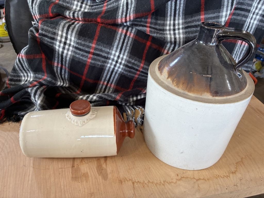 Antique Stone Whiskey Jug and Foot Warmer