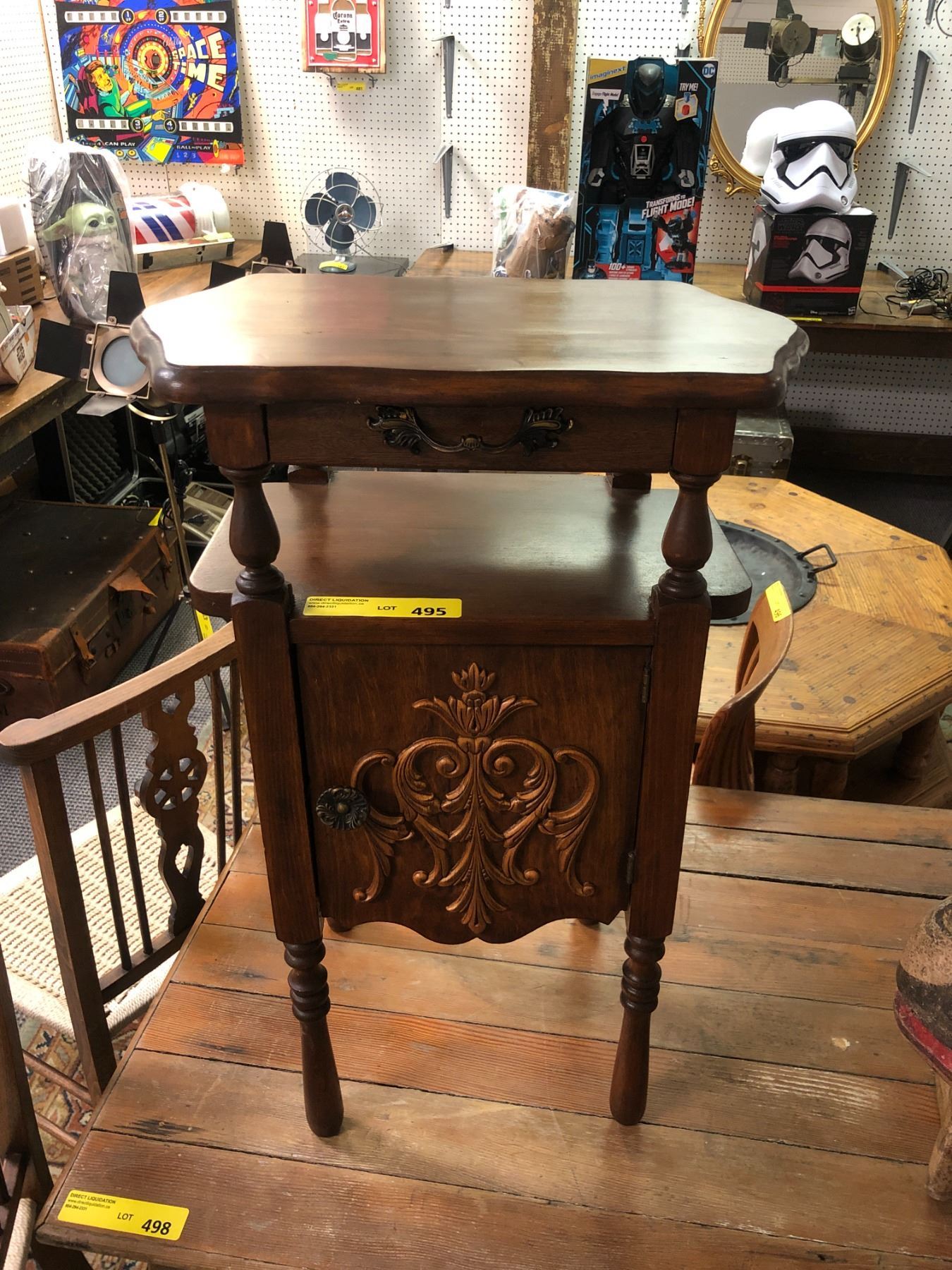 Antique Wood Telephone Stand with drawer and metal lined cupboard - approx. 18in x 12in x 26 1/2in - Nice Piece