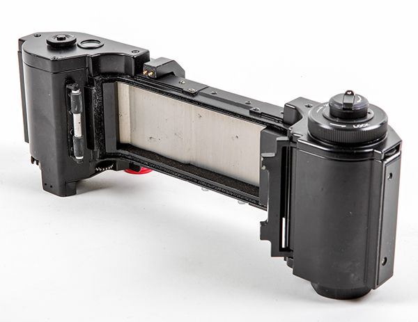 Apollo Program, C1970s, Nasa Nikon F4, 35mm. Film Back (P/N SED 33101575-301 (S/N 1029) 10.5x3.5x3.5") This Nikon film back appears to be one of the many variations of the F4 variety film back designed to hold 250 frames of 35mm. Kodak film. It is one of the earlier versions without the data back. We're not sure of the details on this piece, but it appears to be in excellent condition and may even contain film. This type of Nikon camera was used over the years by NASA personnel to shoot many of the NASA 8x10" pictures you see.