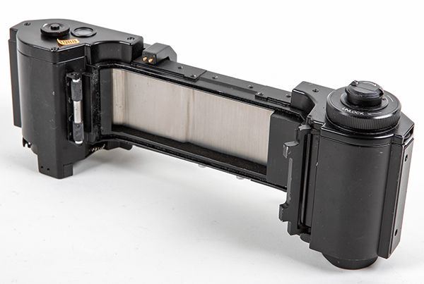 Apollo Program, C1970s, Nasa Nikon F4, 35mm. Film Back (P/N SED 33101575-301 (S/N 1027) 10.5x3.5x3.5") This Nikon film back appears to be one of the many variations of the F4 variety film back designed to hold 250 frames of 35mm. Kodak film. It is one of the earlier versions without the data back. We're not sure of the details on this piece, but it appears to be in excellent condition and may even contain film. This type of Nikon camera was used over the years by NASA personnel to shoot many of the NASA 8x10" pictures you see.