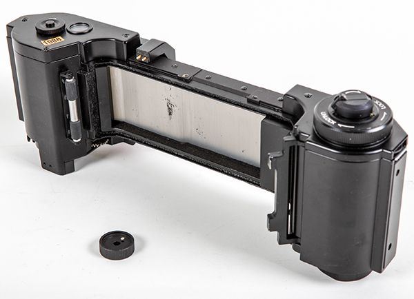 Apollo Program, C1970s, Nasa Nikon F4, 35mm. Film Back (P/N SED 33101575-301 (S/N 1031) 10.5x3.5x3.5") This Nikon film back appears to be one of the many variations of the F4 variety film back designed to hold 250 frames of 35mm. Kodak film. It is one of the earlier versions without the data back. We're not sure of the details on this piece, but it appears to be in very good condition and may even contain film. This type of Nikon camera was used over the years by NASA personnel to shoot many of the NASA 8x10" pictures you see (Note: the film advance dial has come off. The dial is included and the film back still appears to function.).