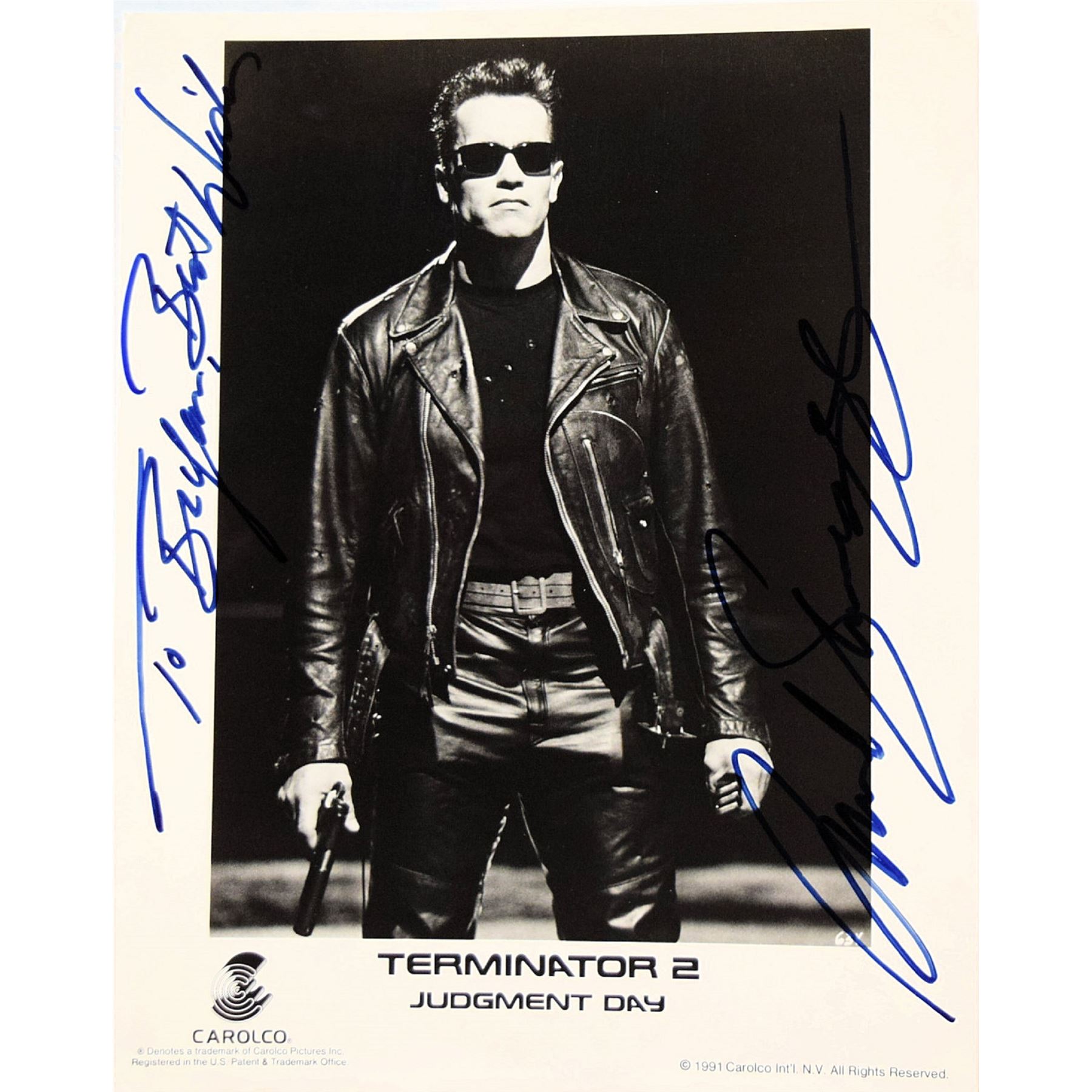8 in. by 10 in. Photo of Arnold from the Movie The Terminator 2 Judgment Day. Signed: To Bryan Best Wishes Arnold Schwarzenegger.