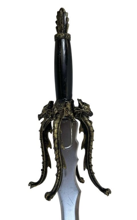 Original sword used by "Ra's al Ghul", played by Matt Nable on the production of the superhero television series 'Arrow' (2012-2020), which follows billionaire playboy Oliver Queen (Stephen Amell), who claimed to have spent five years shipwrecked on Lian Yu, a mysterious island in the North China Sea, before returning home to Starling City (later renamed "Star City") to fight crime and corruption as a secret vigilante whose weapon of choice is a bow and arrow.