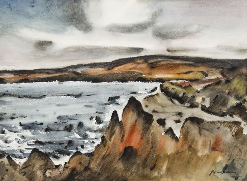 Artist: Arthur Haddock; Title: Coastal Scene; Medium: Watercolor; Dimensions: 21 x 29 inches; Signed: Signed lower right; Framed/Base: 32 x 39.5 inches