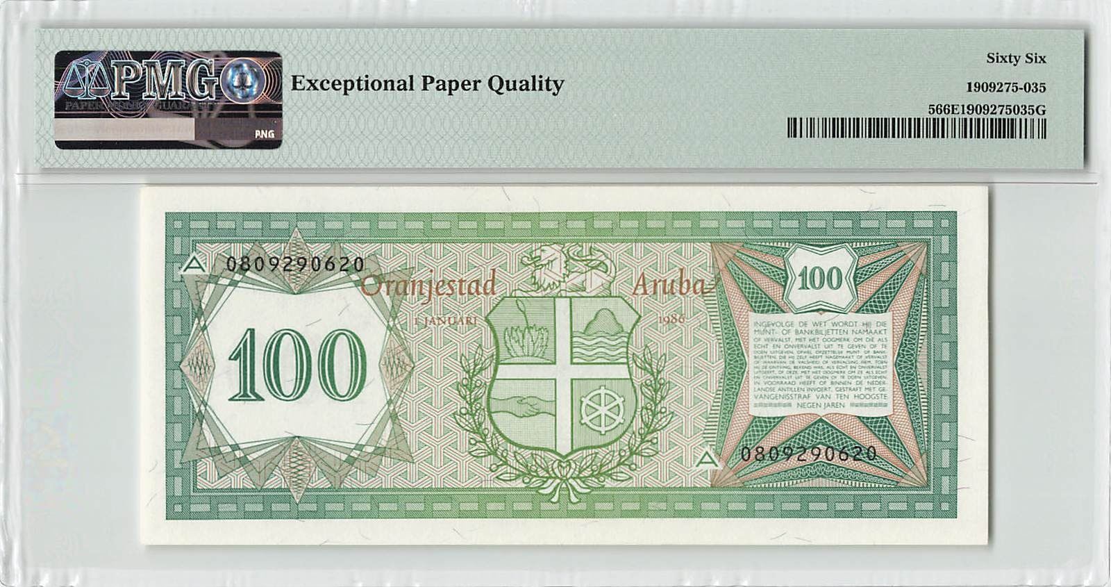 Aruba 100 Florin 1986 Pick 5 PMG Gem UNC 66 EPQ