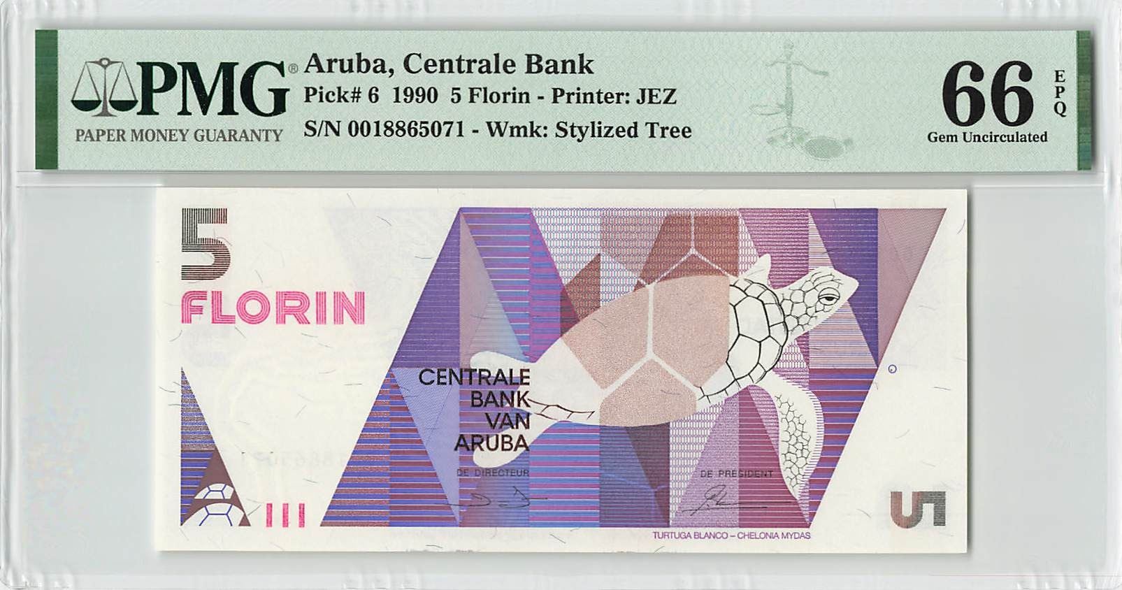 Aruba 5 Florin 1990 Pick 6 PMG Gem Uncirculated 66 EPQ