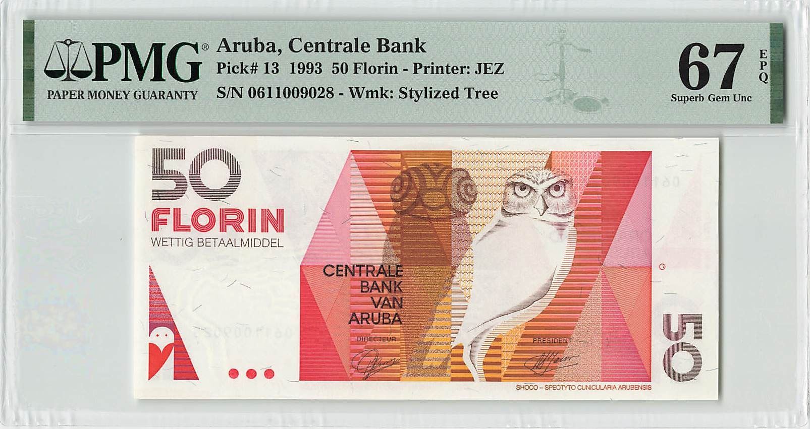 Aruba 50 Florin 1993 Pick 13 PMG Superb Gem Uncirculated 67 EPQ