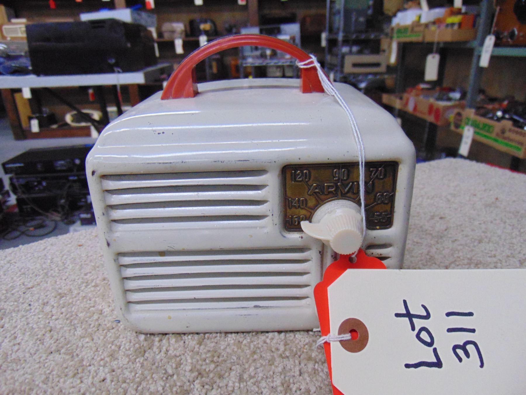 White metal radio; model 444; original back