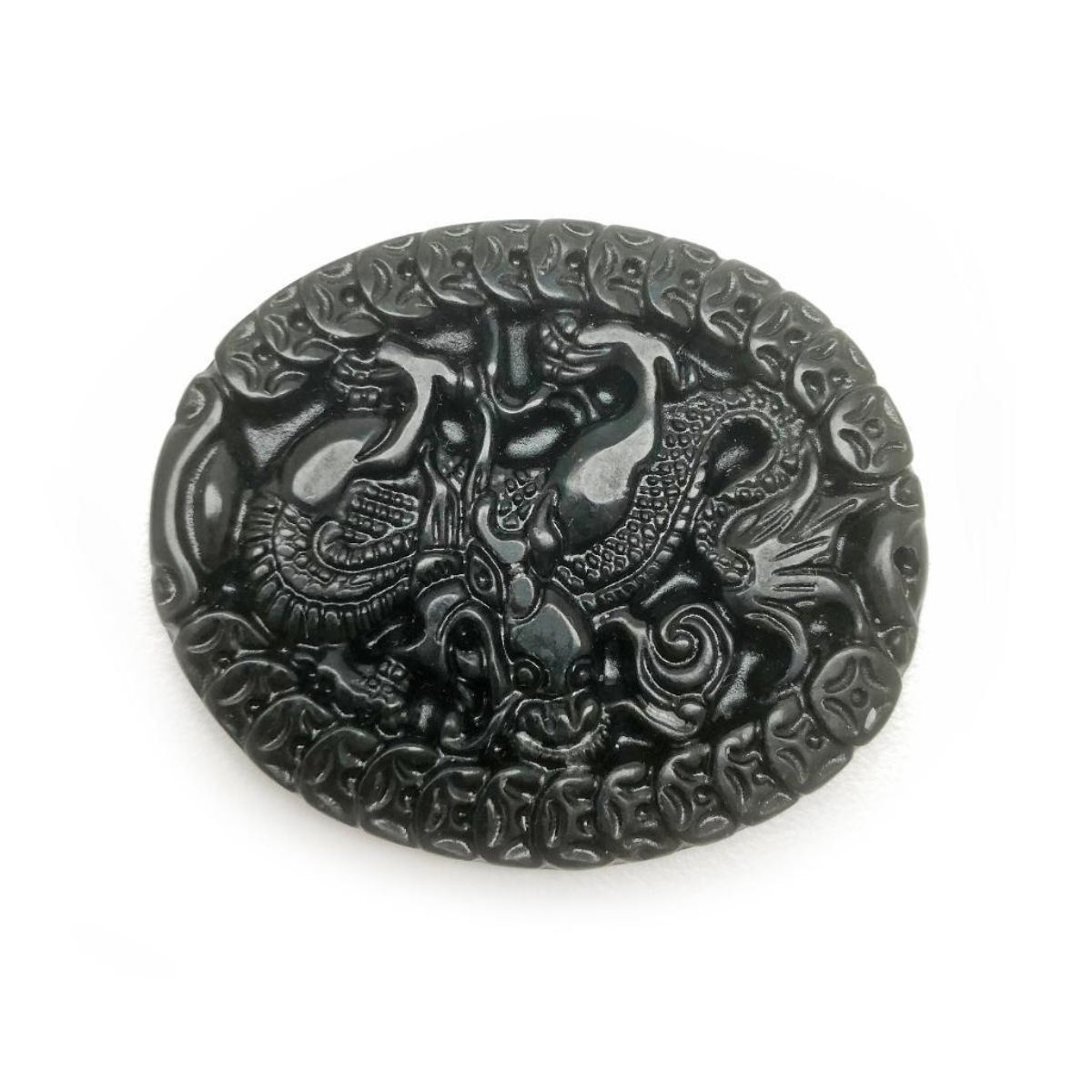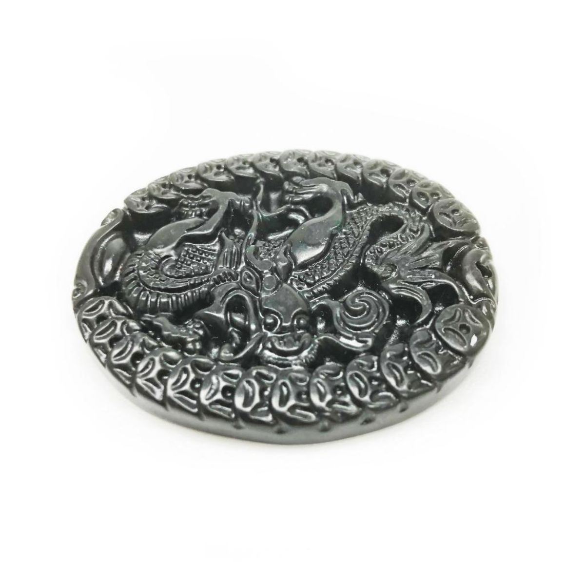 An Asian Green/Black Jade Carved Dragon Medallion. In Chinese Culture The Dragon Symbolizes Strength and Power.