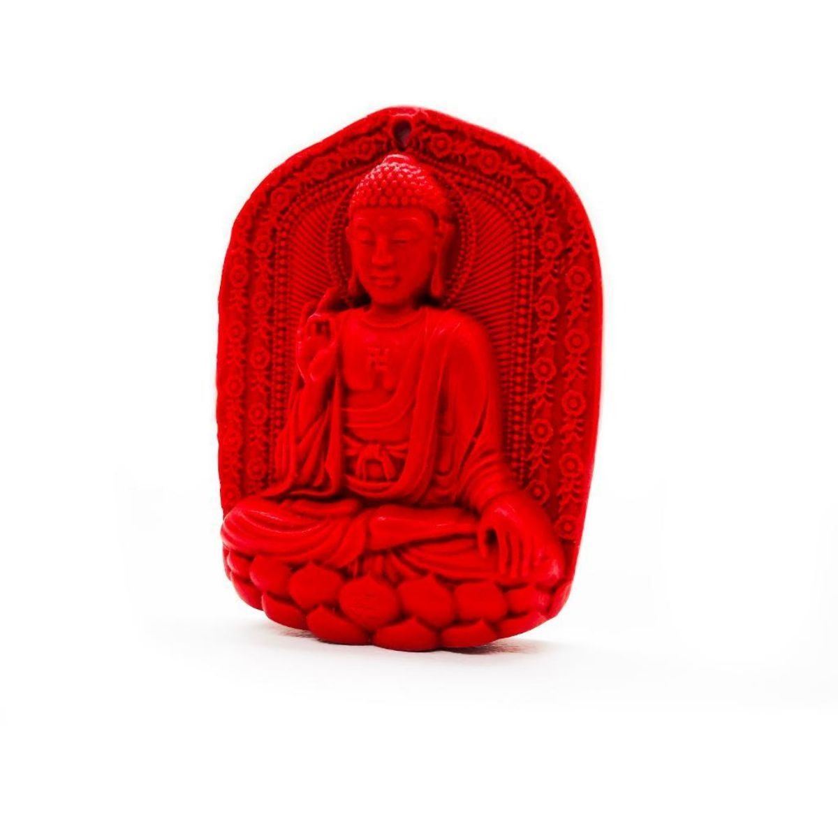 Asian Natural Red Cinnabar Resting Buddha Medallion
