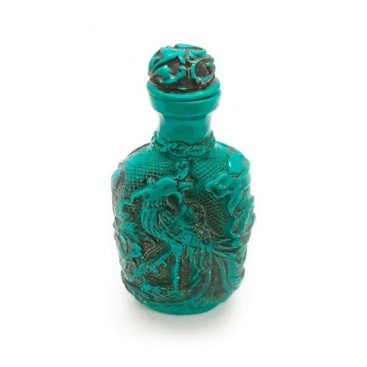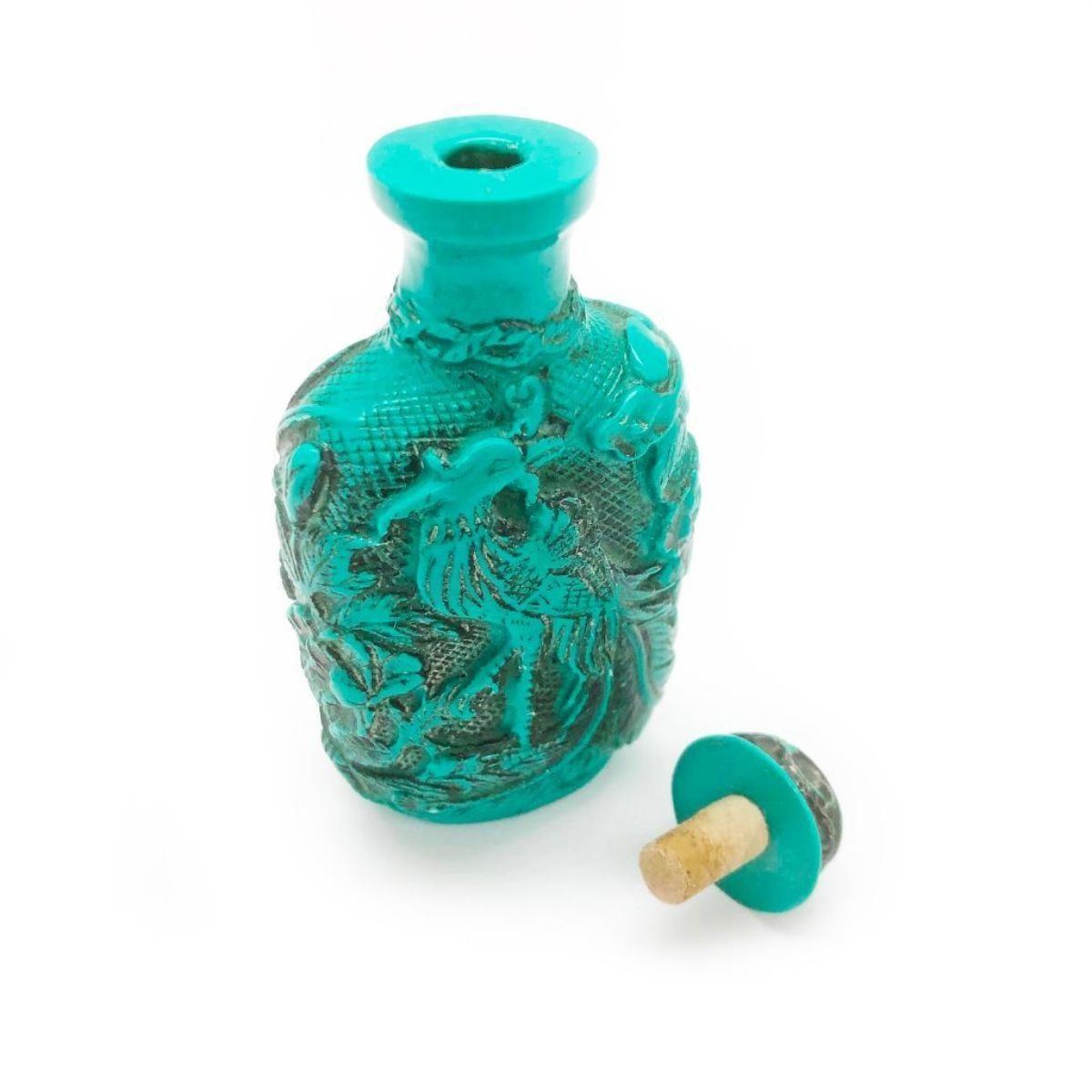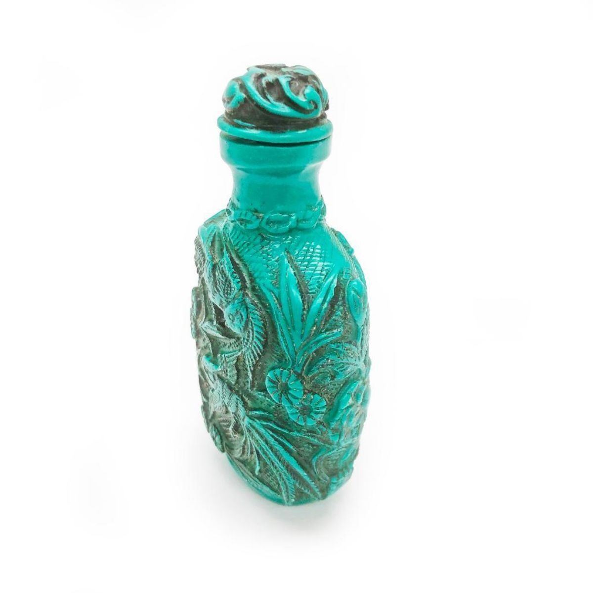 Asian Peacock Carved Turquoise Snuff Bottle. View Photos For Details