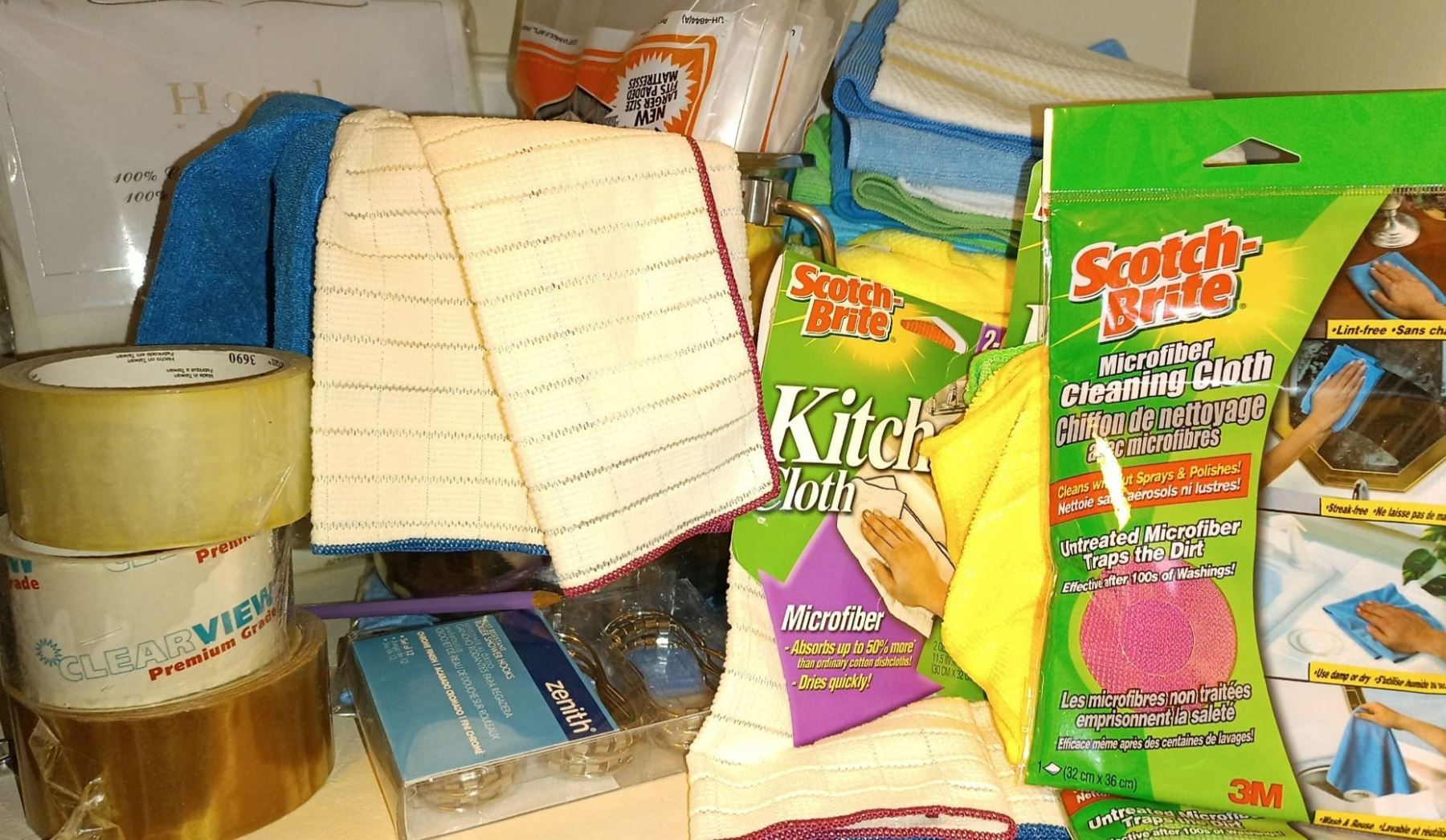 Assorted Brand New Shop Rags, Rolls Of Tape, & Cleaners