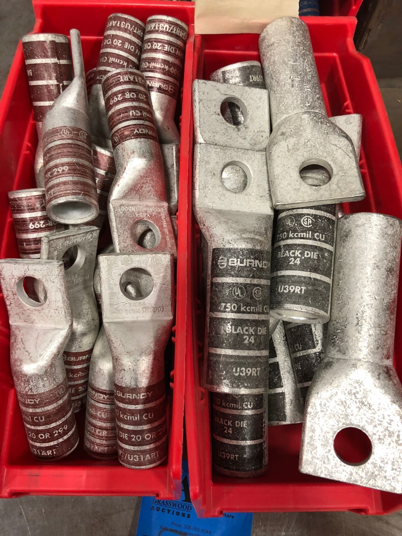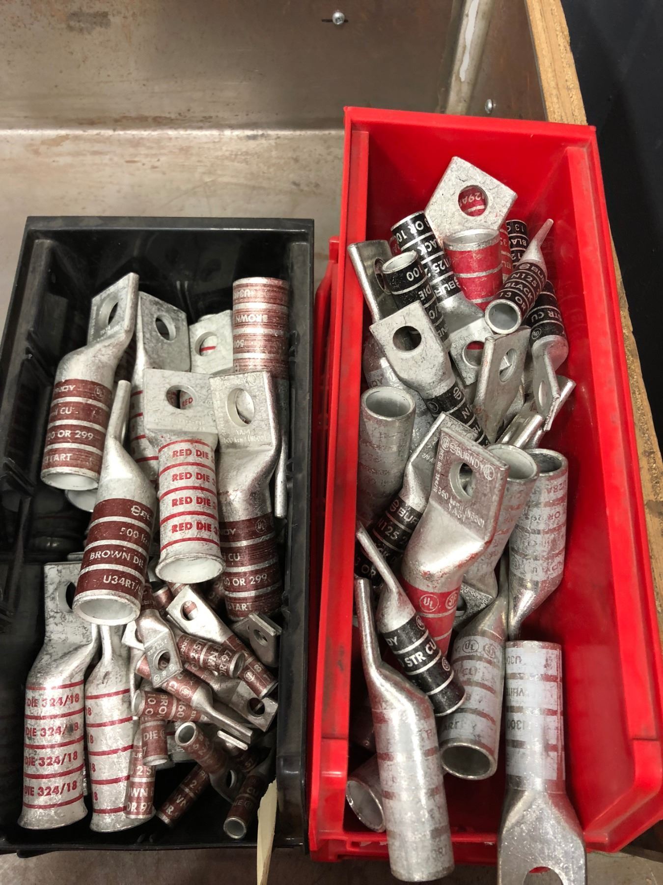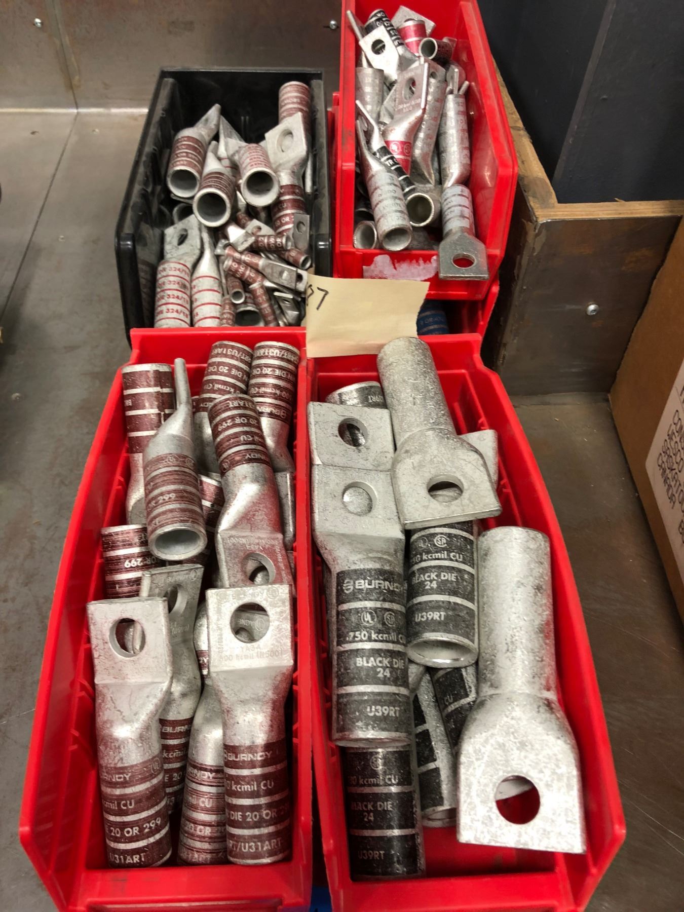 Assorted Burndy crimp lugs N60, N125, N300, N350, 500 KCMIL, 750 KCMIL