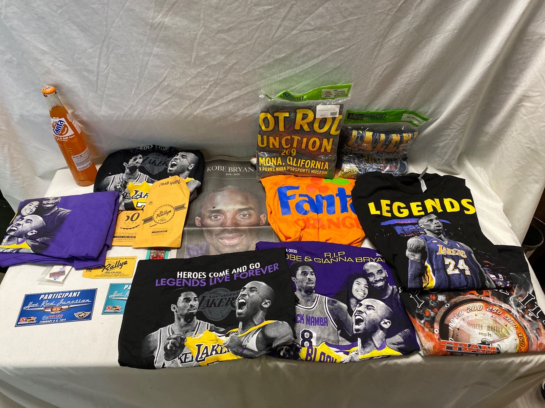 Assortment Of T-Shirts Kobie Bryant And Fanta, With Fanta Bottle, Hot Rod Participant Plate, Etc..