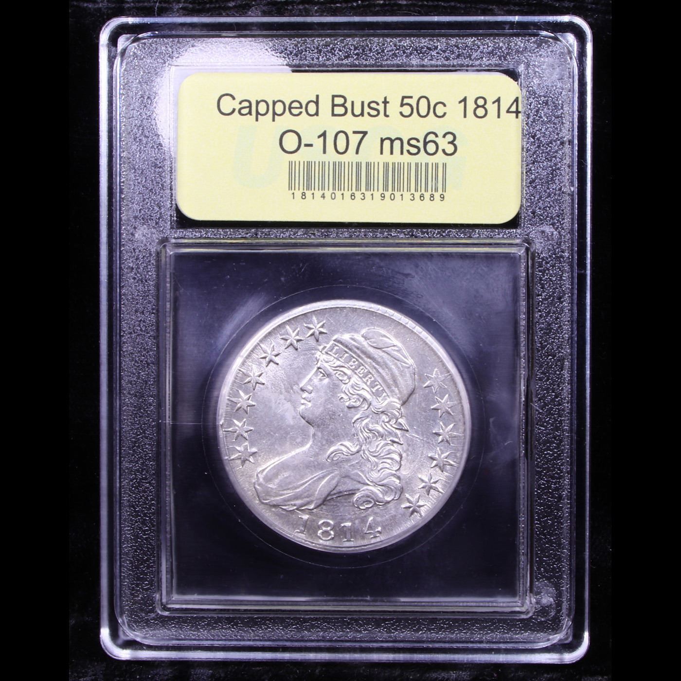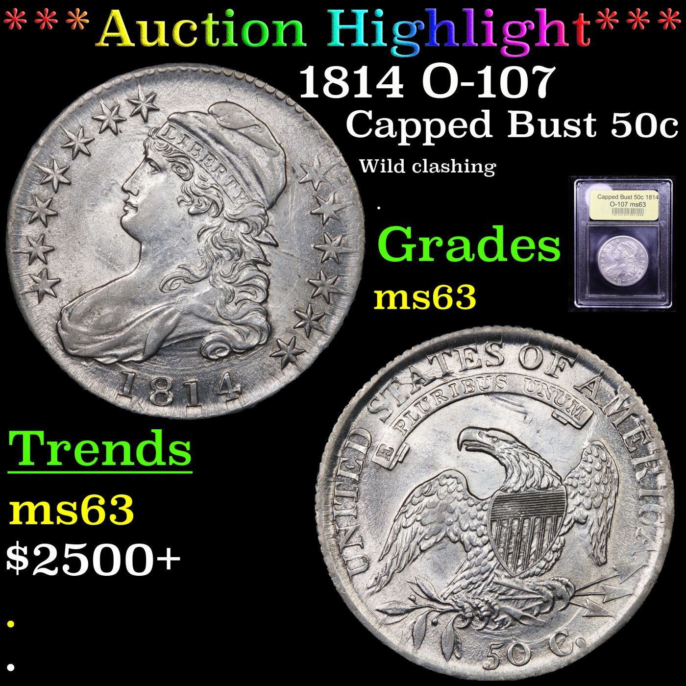 ***Auction Highlight*** 1814 O-107 Capped Bust Half Dollar 50c Graded Select Unc By USCG. Up for Auction is a Lustrous and wilding clashed 1814 Capped Bust Half Dollar. Outstanding Eye Appeal and Virtually untoned surfaces with Blazing luster separate this dynamite Capped Bust Half from the average example. A die chip in the nook of N in UNITED but no die chip on the nose identifies the O-107 die state. Struck from clashed and bulged dies, with slight weakness at the cap, and several stars, and the very center of the left wing. All else is crisp, brilliant, and attractive. A Corey's Pick, Bid to Win, Don't let it get Away Coin