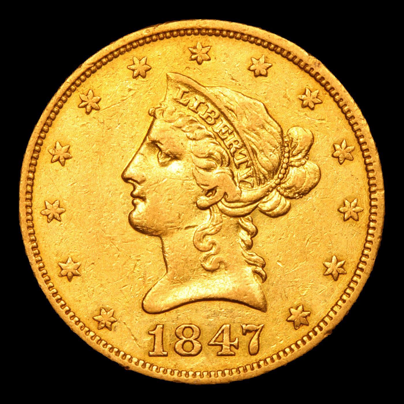 ***Auction Highlight*** 1847-p Gold Liberty Eagle $10 Graded au53 details By SEGS.