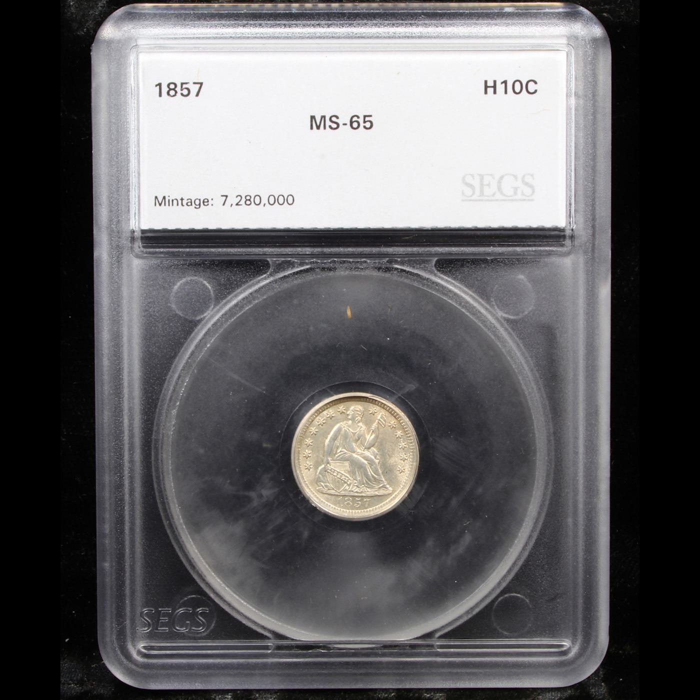 ***Auction Highlight*** 1857-p Seated Liberty Half Dime 1/2 10c Graded ms65 By SEGS.