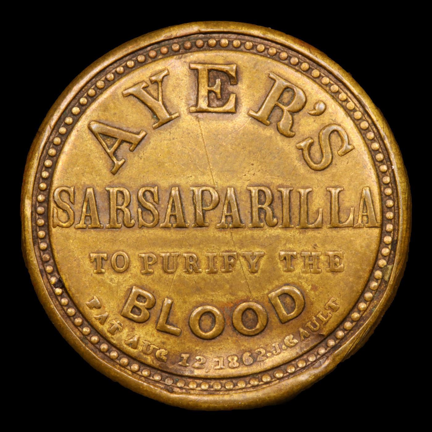 ***Auction Highlight*** 1862 J. Gault’s Encased Postage EP-34B - Ayer’s Sarsaparilla, Large Ayer’s V