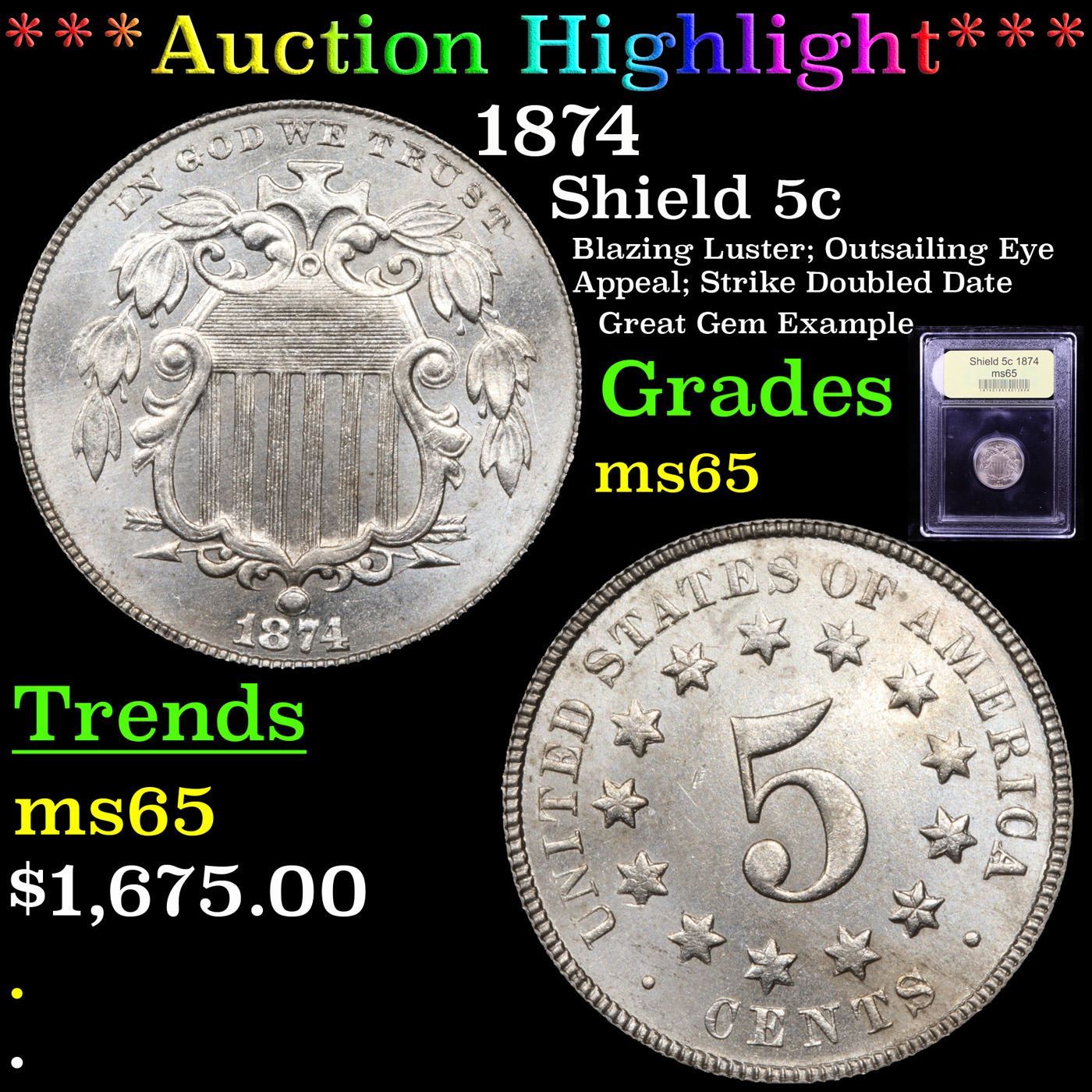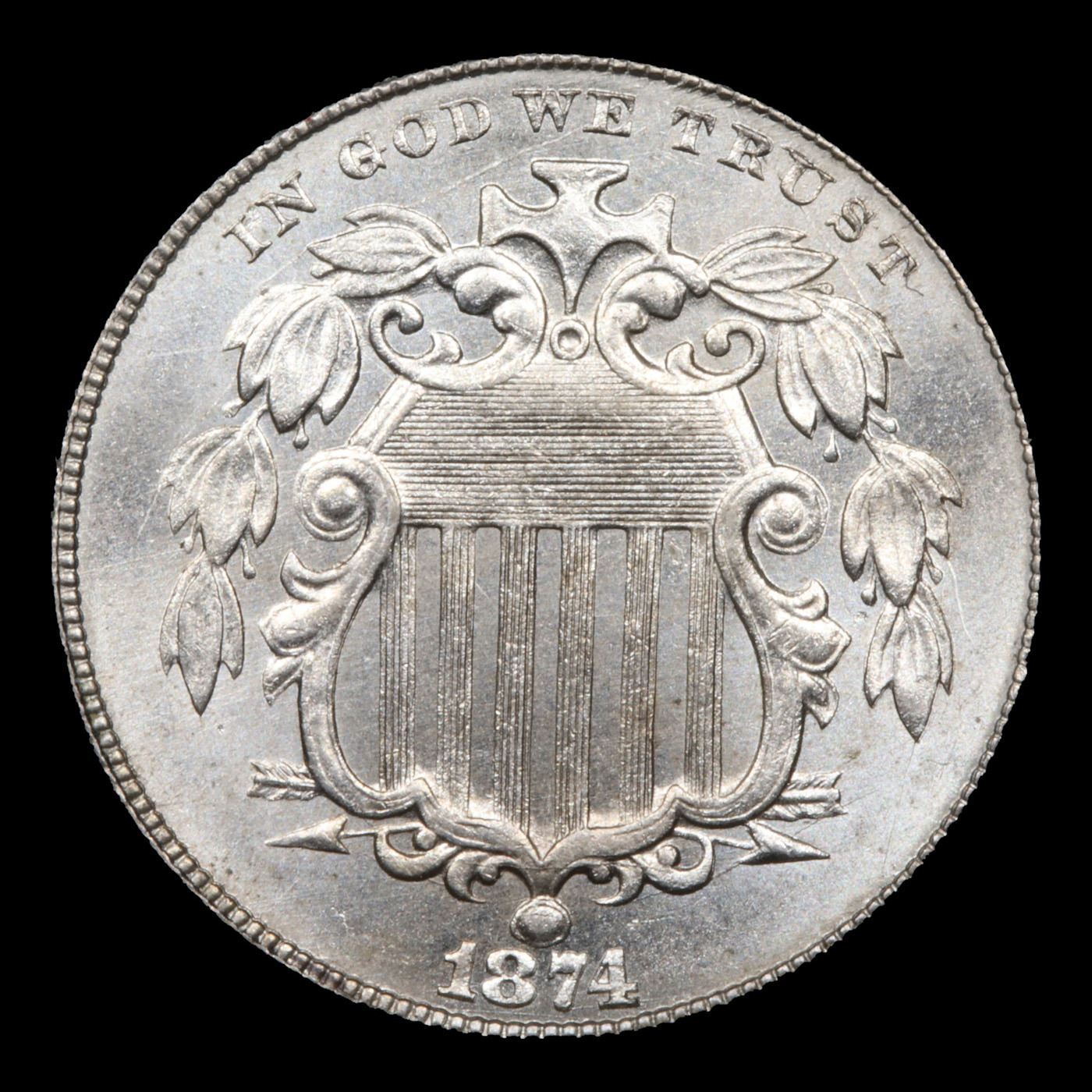 ***Auction Highlight*** 1874 Shield Nickel 5c Graded GEM Unc By USCG. A Corey's Pick, Bid to Win Coin