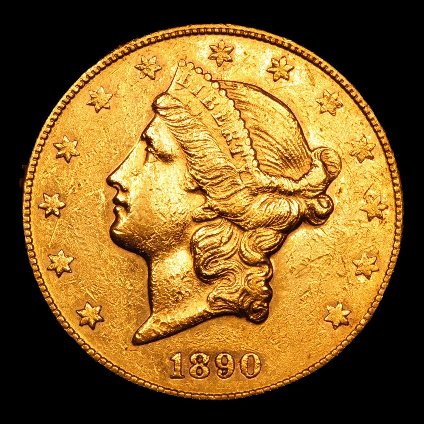 ***Auction Highlight*** 1890-cc Gold Liberty Double Eagle $20 Graded au58 details By SEGS. Light honey-apricot blends with regions of bronze patina and somewhat reflective fields. The design elements are nicely defined and the overall appearance not that far from Mint State quality. The mintage for this popular issue is 91,209 pieces, up more than 60,000 coins from the preceding year's double eagle tally at the Carson City Mint. Face value was $1,824,180. Survivors are equally popular with mint marked type collectors, Liberty Head double eagle specialists, and Carson City Mint enthusiasts.