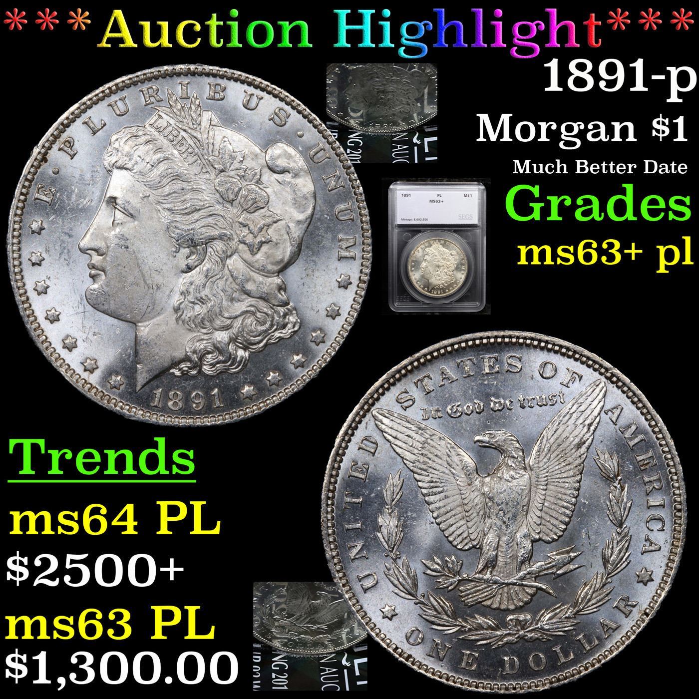 ***Auction Highlight*** 1891-p Morgan Dollar $1 Graded ms63+ pl By SEGS. A Corey's Pick, Bid to Win, Don't let it get Away Coin