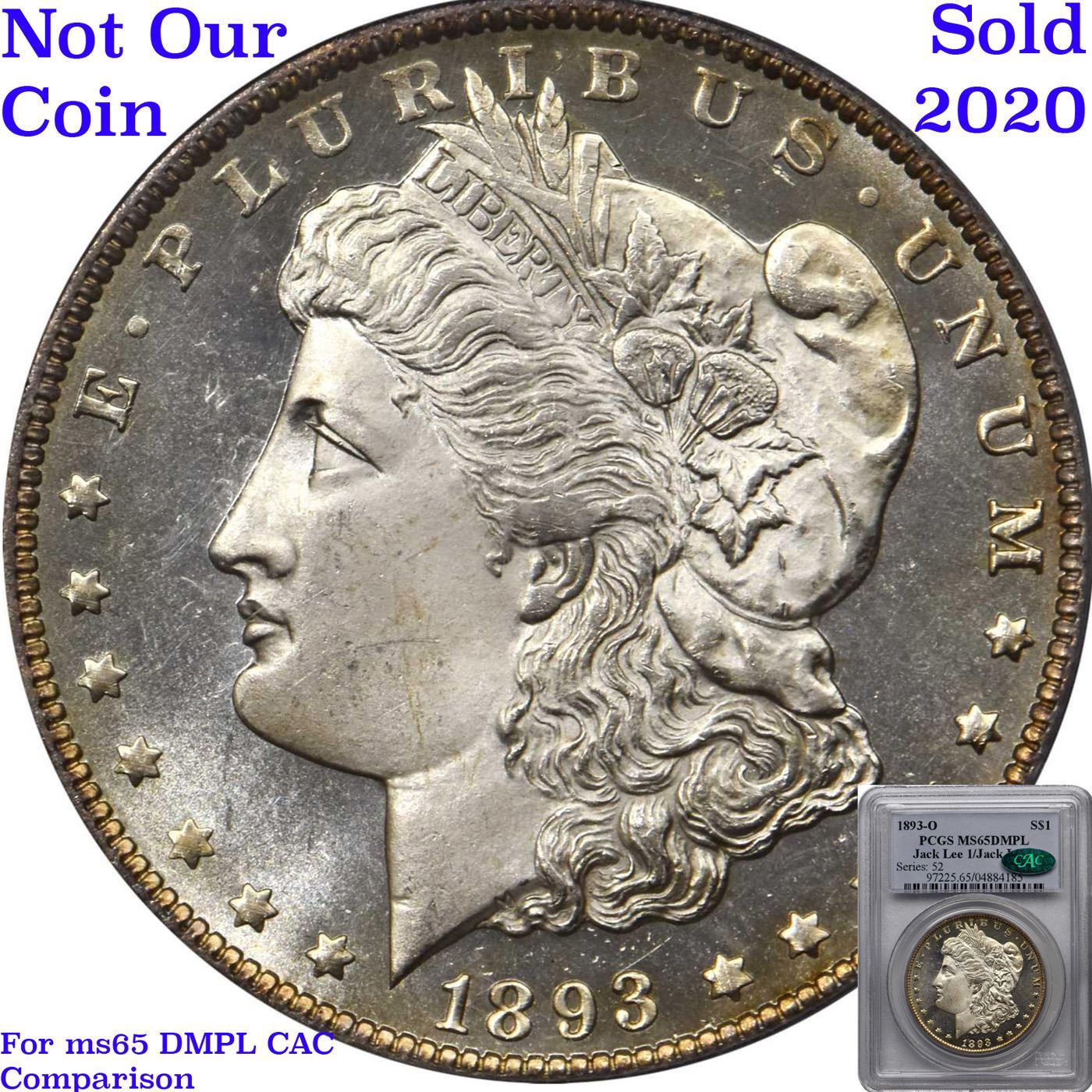 ***Auction Highlight*** 1893-o Morgan Dollar $1 Graded ms64 DMPL By SEGS. This is a coin in a grade -- or, more accurately, a contrast level -- that is virtually unheard of. The 1893-O Morgan dollar issue is notorious for being a low-contrast issue of generally mediocre quality. The Bowers Guide Book to the series, second edition, turns the memorable phrase "Choice MS-64 coins are rare and MS-65 coins are of sufficient fame that an auction house might showcase one in a news release." We will leave the news releases to our excellent PR department, but this is an extremely important coin, and these are coins that seldom appear at auction, since the demand for private trades is intense. Examples of this issue with Prooflike surfaces in this grade are rare, and examples with Deep Prooflike surfaces are extremely rare. This piece is silver-white and deeply reflective throughout. Tied for 3rd finest in DMPL. I have included a picture of the only other ms64 DMPL, and an ms65 DMPL for your comparison. A Corey's Pick, Bid to Win, Don't let it get Away, you might not find its equal Coin. I give this coin my highest recommendation