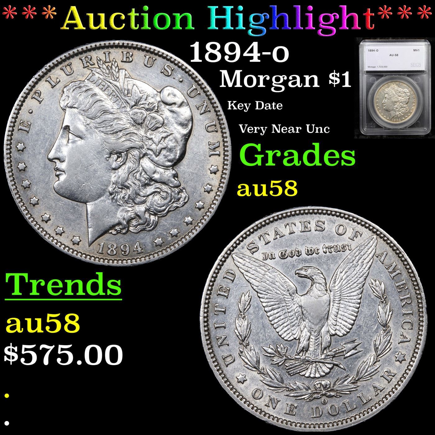***Auction Highlight*** 1894-o Morgan Dollar $1 Graded au58 By SEGS. A Corey's Pick, Bid to Win Coin