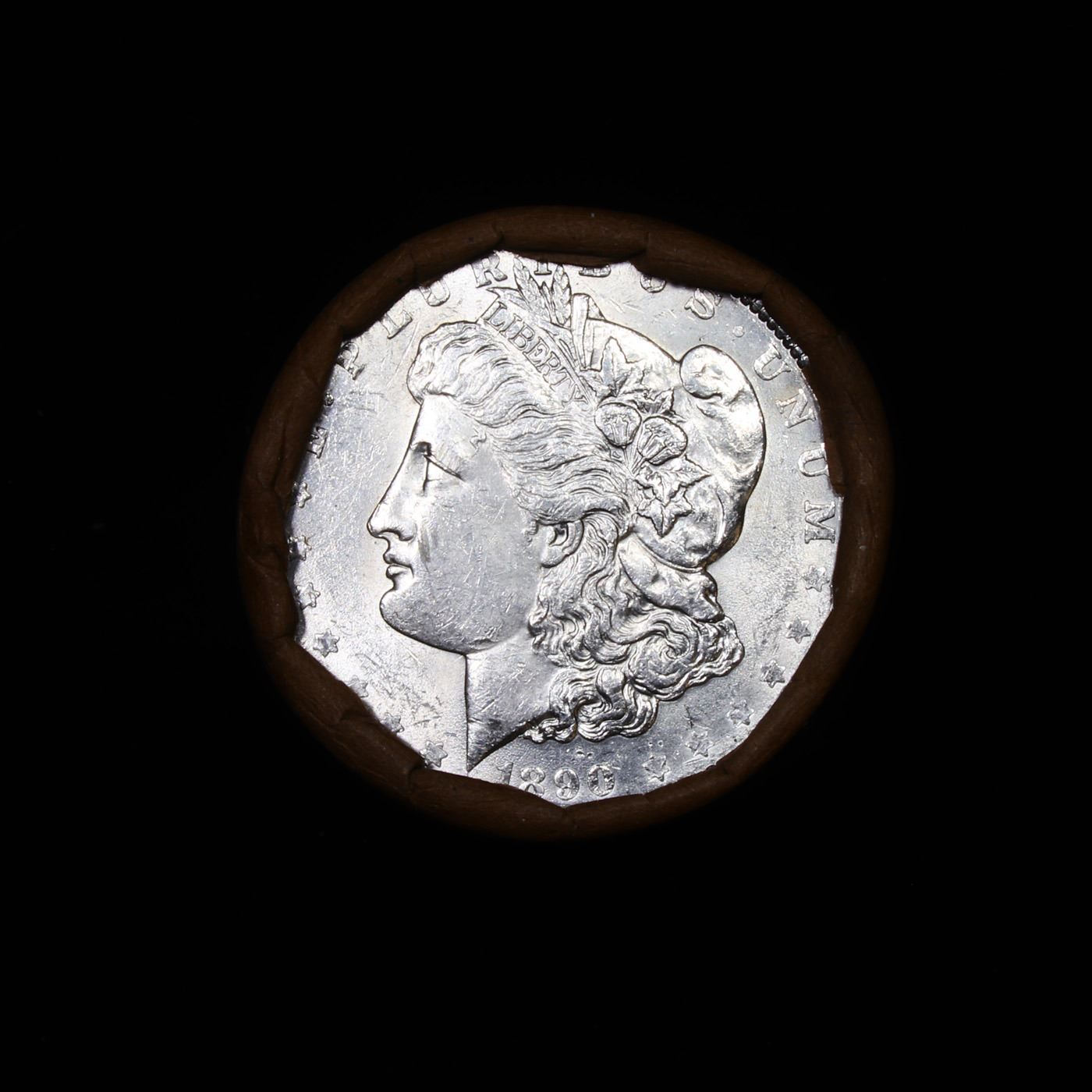 ***Auction Highlight*** AU/BU Slider Rutland Shotgun Morgan $1 Roll 1890 & P Ends Virtually UNC. Up For Auction Is a Very Near Solid Uncirculated Morgan Dollar Roll In an old National Bank Of Rutland Wrapper with Tight Shotgun Ends. This Roll is filled with Virtually all Uncirculated Silver Dollars. This is how we determined that. A Uncirculated Morgan Dollar a Weights 26.73 Grams. So 20 of them would weigh, 534.6 Grams. Our Uncirculated Roll Weighs 536.7 Grams, so the Wrappers weigh 2.1 Grams. The Roll at hand weighs 536.41 Grams. Deducting the Wrapper Weight of 2.1 Grams, the average coin in this roll weights 26.7 Grams. Your going to find in this roll a lot of Uncirculated coins and a few sliders. This is a Very Near Solid roll of Uncirculated Morgan Dollars.