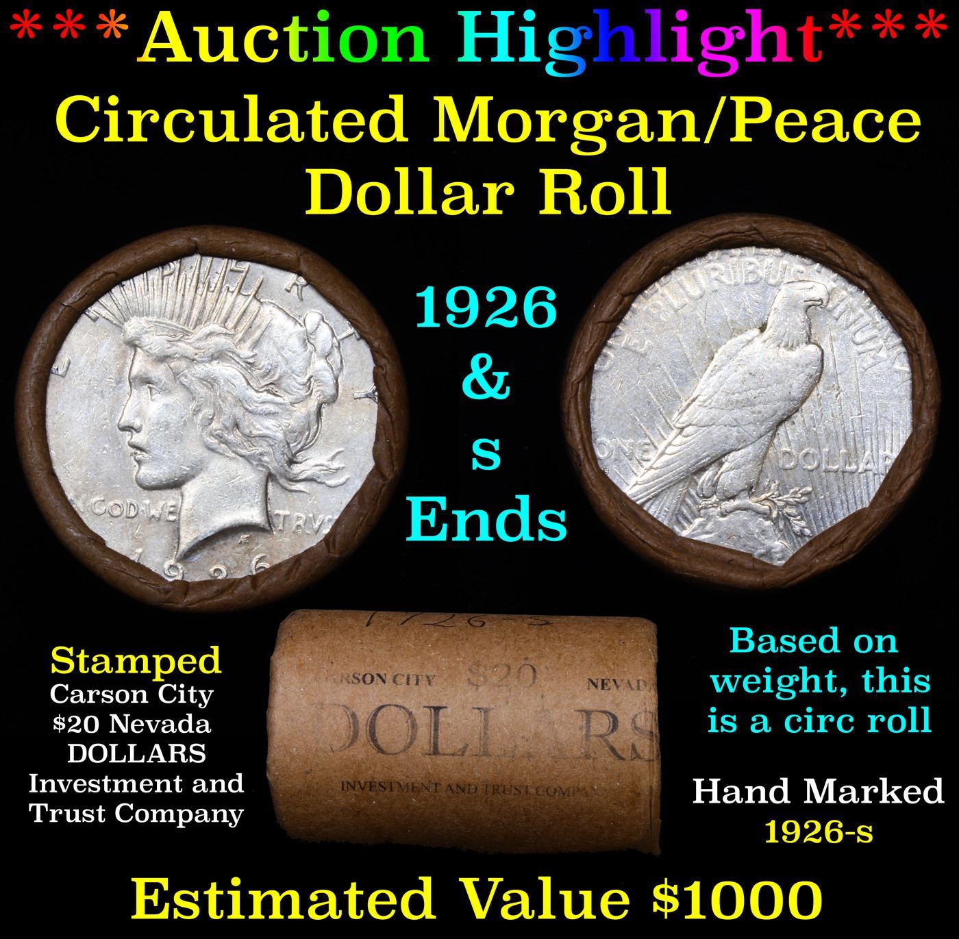 ***Auction Highlight*** Full solid Date 1926-p Peace silver dollar roll, 20 coin (fc)