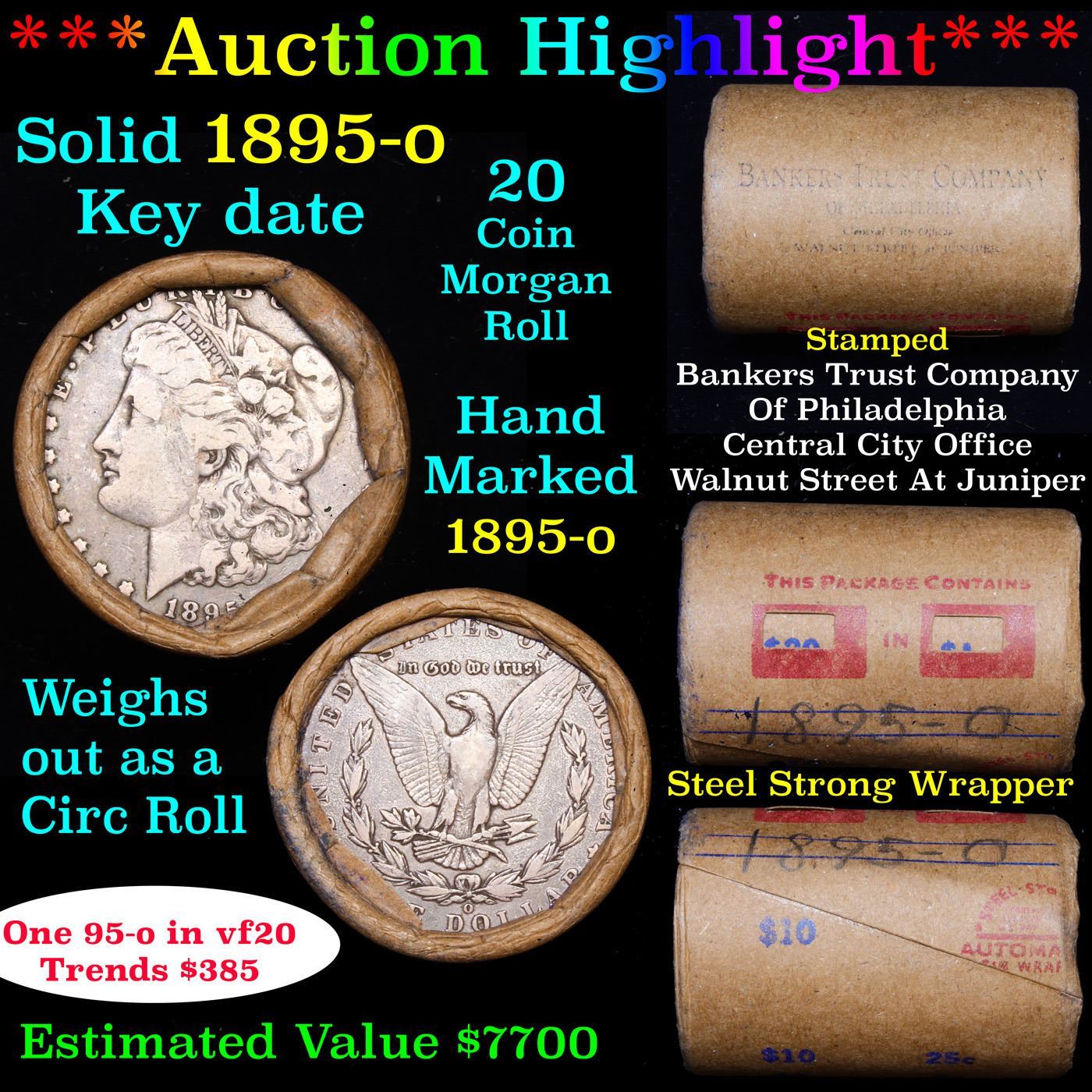 ***Auction Highlight*** Full solid KEY date 1895-O Morgan silver dollar roll, 20 coins (fc)