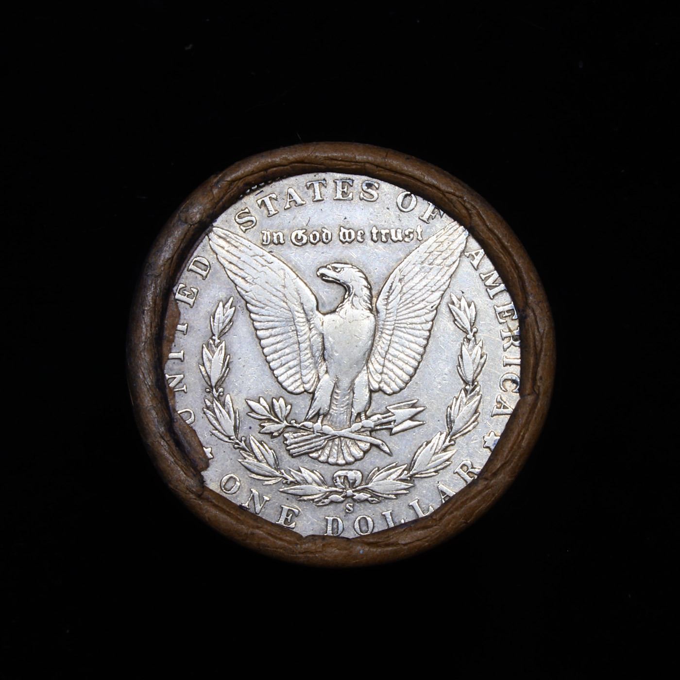 ***Auction Highlight*** Full solid date 1896-s Morgan silver dollar roll, 20 coins. This roll is held in an old Steel strong wrapper, patented 1921, stamped "Bankers Trust Company of PhiladelphiaÓ, Walnut Street at Juniper. This roll contains 20, 1896-s Morgan silver Dollars. The coins may range from circulated to uncirculated. Any condition is possible. We have weighed the roll and can assure you that it is 20 Silver Dollars, that all 20 are 1896-s and that it is not an uncirculated roll as the weight comes in slightly under the 534.60 grams that a fully uncirculated roll would weigh. We recently Acquired a large Estate Hoard of solid date Rolls. Trends lists au50 at $900, xf40 at $375, vf20 at $185, f12 at $80, vg8 at $60, g4 at $40.