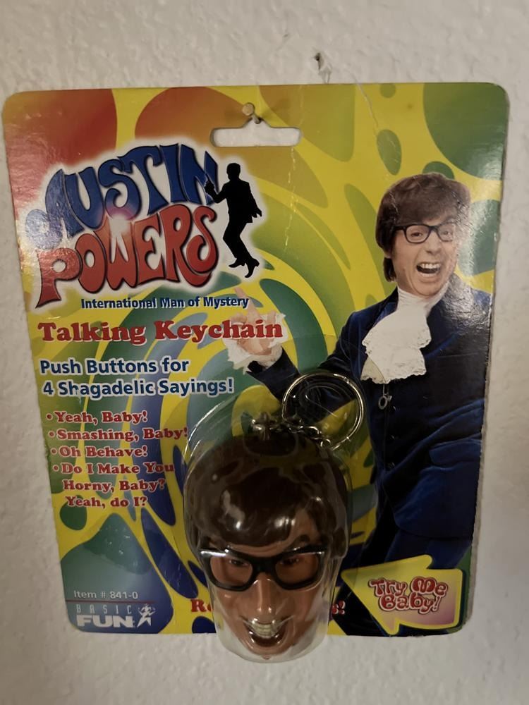 Austin Powers Talking Key Chain includes 4 Shagadelic Sayings. New in original packaging This item is part of an exclusive collection obtained from an executive at Paramount Pictures.