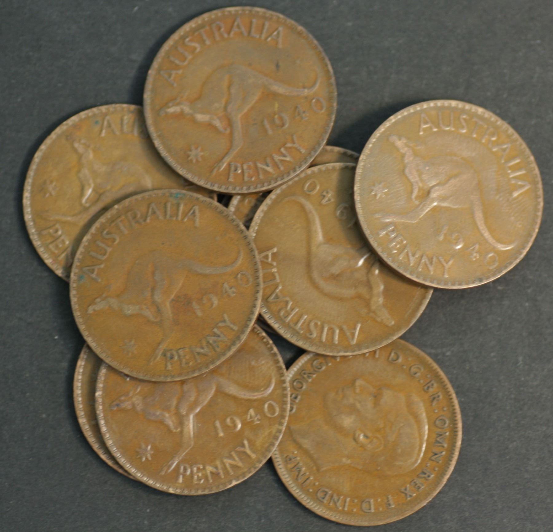 Australia Pennies 1940 KG Better Grade (10 Coins) Scarce
