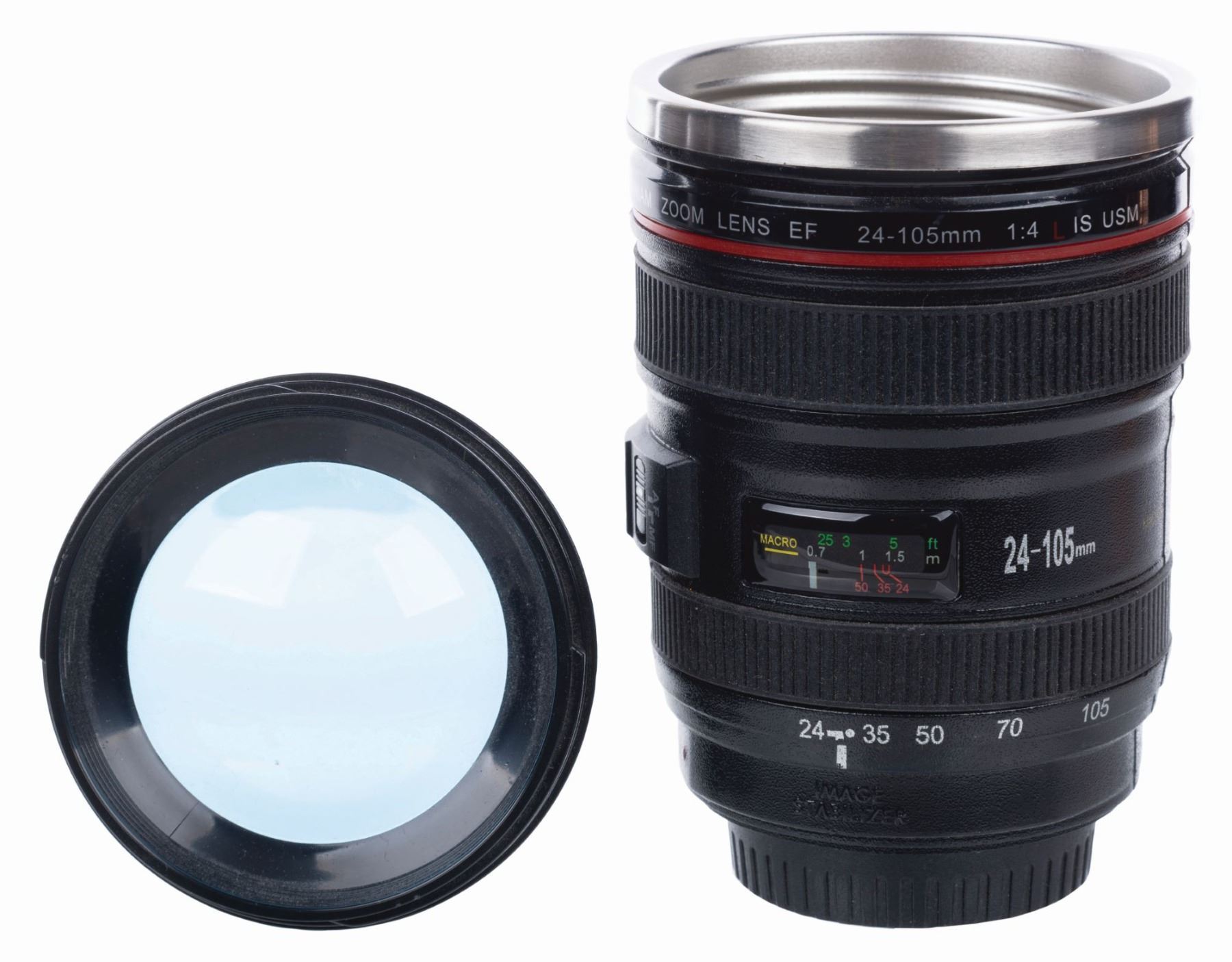 (Disney, 2018-19) A collection of "Avengers: Infinity War” and "Endgame” camera crew gifts. Included are a crew-exclusive copper mug and pin, and a camera-lens-shaped mug. The crew mug is etched with the Infinity Gauntlet on one side and the Avengers "A” logo with "III – IV Camera” on the other. The pin depicts the Infinity Gauntlet and reads "ILM VFX 2018 Infinity War.” The plastic "lens” mug seals with a screw-on lid and comes in an "Avengers Camera Crew” drawstring bag. Measuring 3.75" tall, the copper mug and 1.75” mug are in fine condition. The lens mug measuring 3.25” in diameter x 5.5” high is in very good condition with very light handling wear.