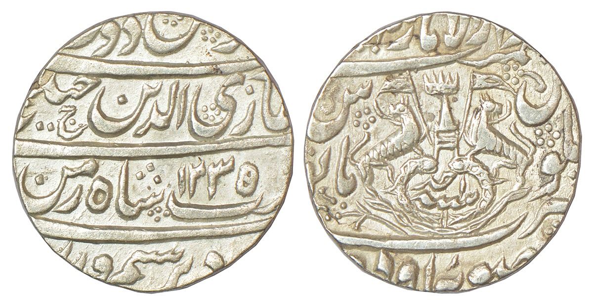 Awadh, Ghazi ud-Din Haidar (1819-1827 AD), silver rupee, Lakhnau mint, AH 1235/RY Ahd, KM 165.1; M&D 7.22, 10.97g.