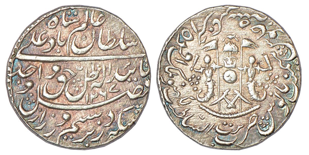 Awadh, Wajid Ali Shah (1847-1856 AD), silver rupee, Lakhnau mint, AH 1267/RY 5, KM 365.3, 11.14g.