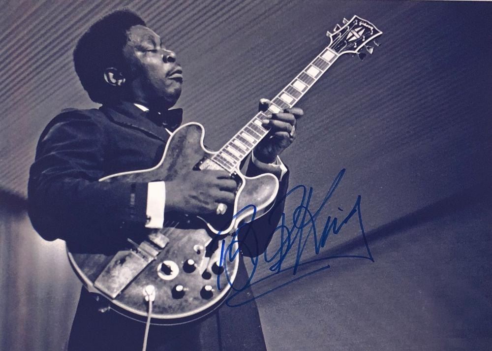 B.B. King facsimile signed photo. 8x10 inches. This item is a reprint of an original autograph