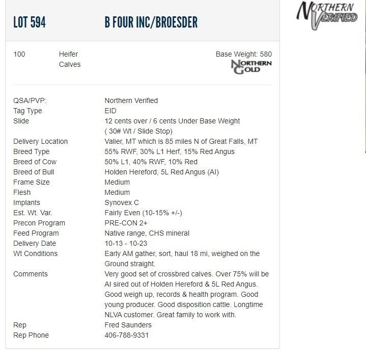 B Four Inc/Broesder - 100 Heifers; Base Weight: 580