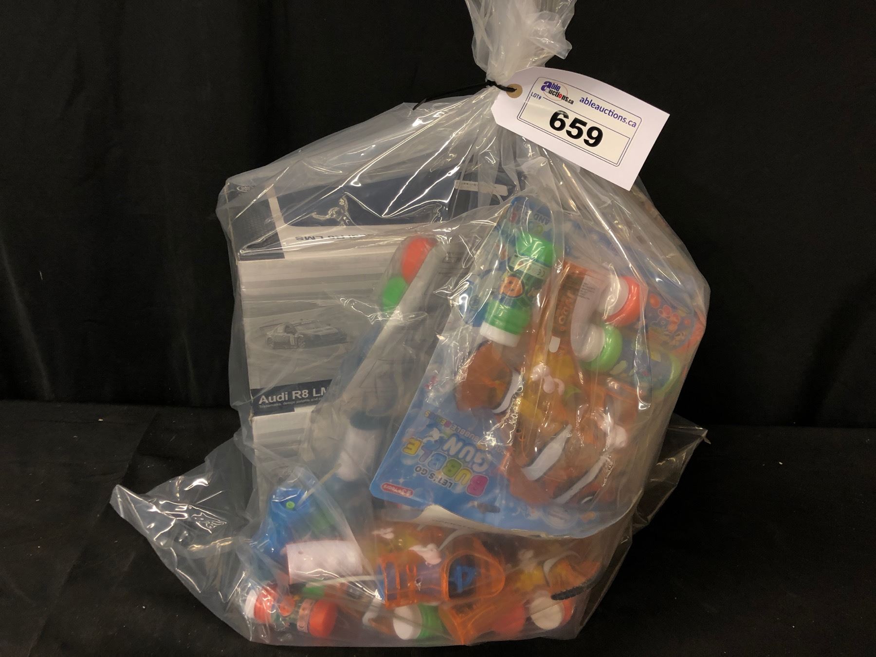 BAG OF 2 AUDI R8 RC CARS AND MULTIPLE BUBBLE GUNS