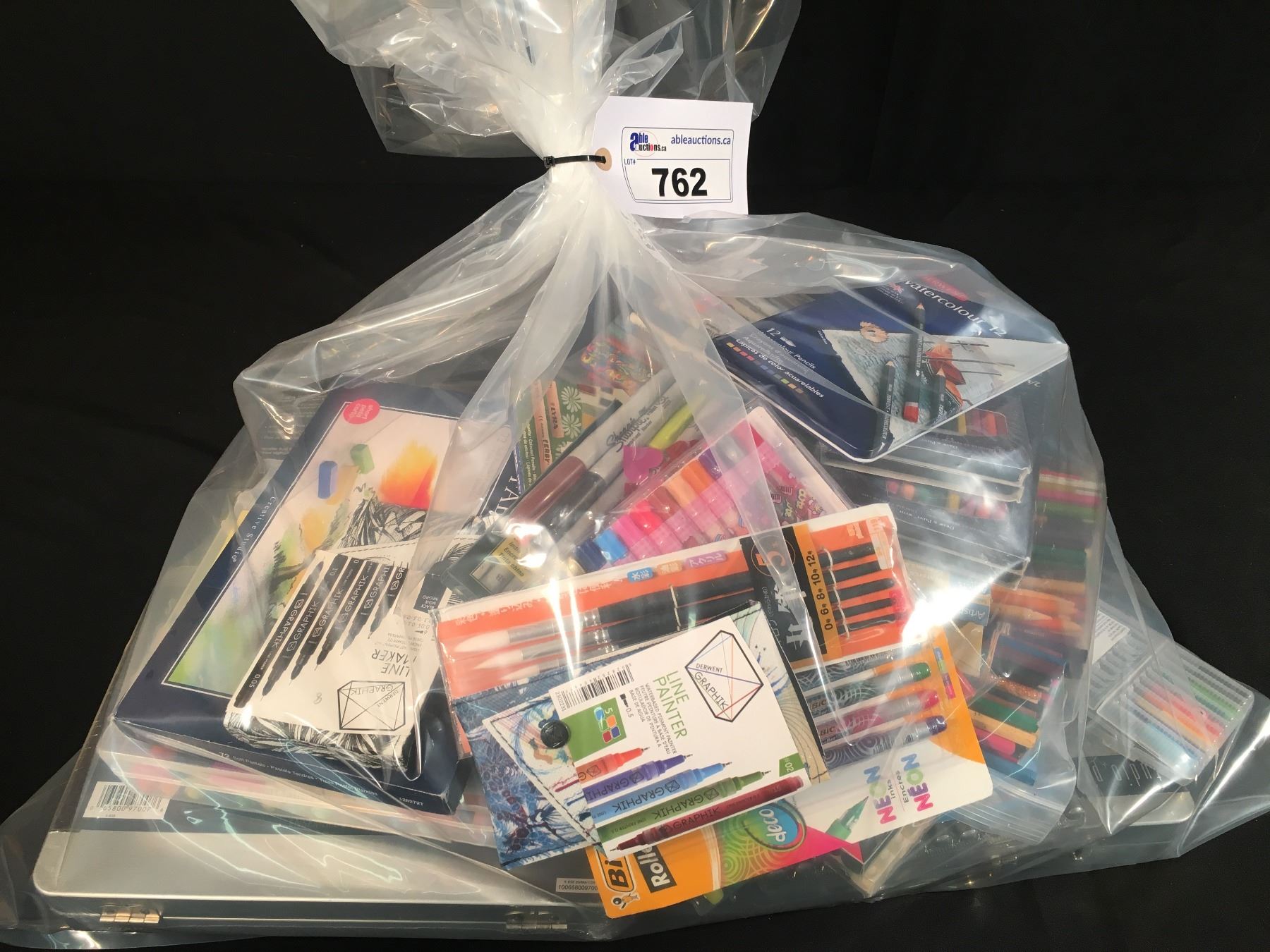 BAG OF ASSORTED ARTS & DRAWING SUPPLIES: MARKERS, PENCILS, PENS & MORE
