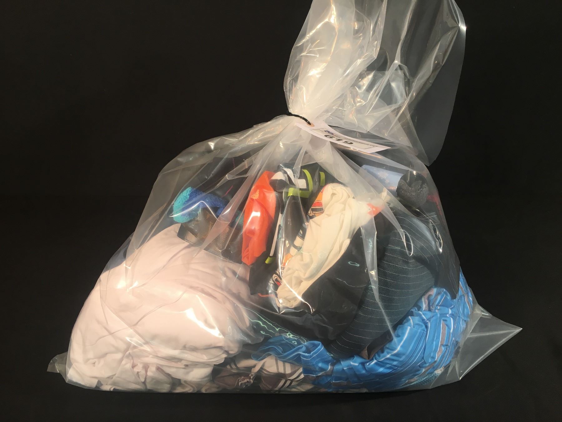 BAG OF ASSORTED MENS & WOMENS CLOTHING: SHOES, SHIRTS & MORE