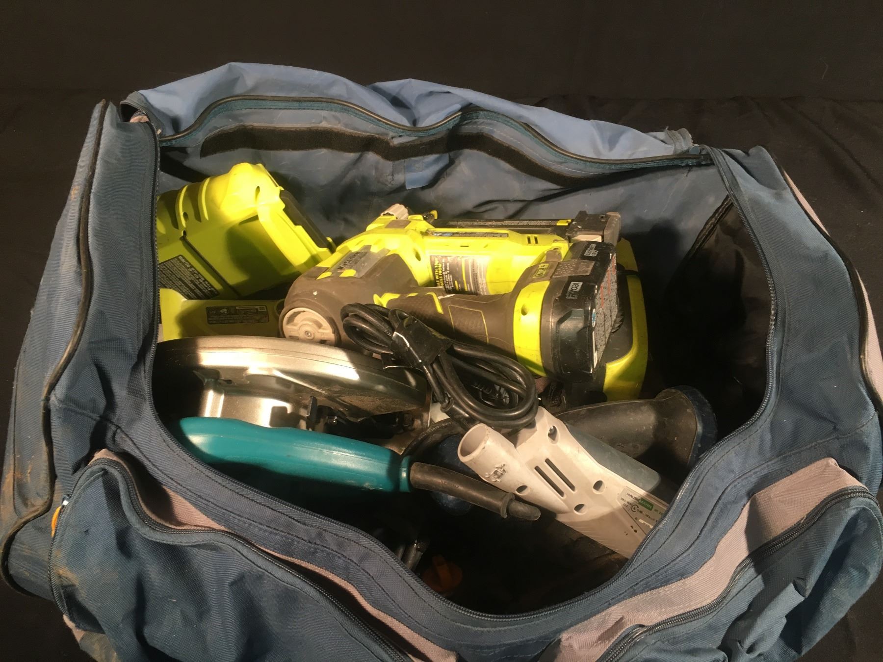 BAG OF ASSORTED RYOBI & MAKITA POWER TOOLS